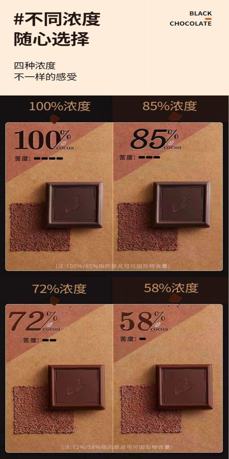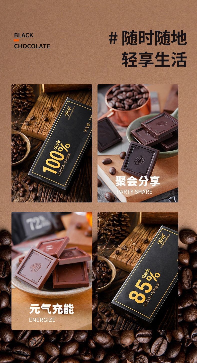 心心相印 百利芙黑巧克力可可脂100%85%健身代餐零蔗糖烘焙休閒解饞小零食