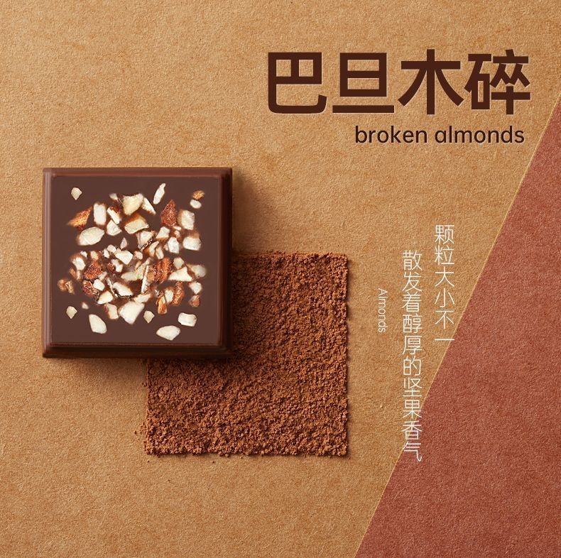 心心相印 俄羅斯風味巴旦木黑巧克力純可可脂混閤堅果果仁巧克力爆款零食品