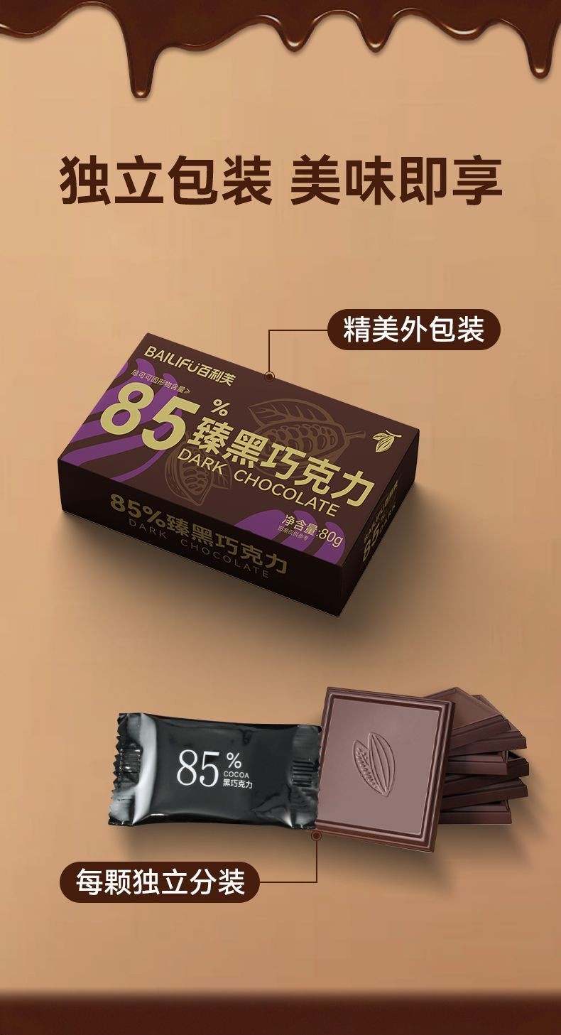 心心相印 百利芙黑巧克力純可可脂獨立包裝網紅健身盒裝解饞休閒送女友零食