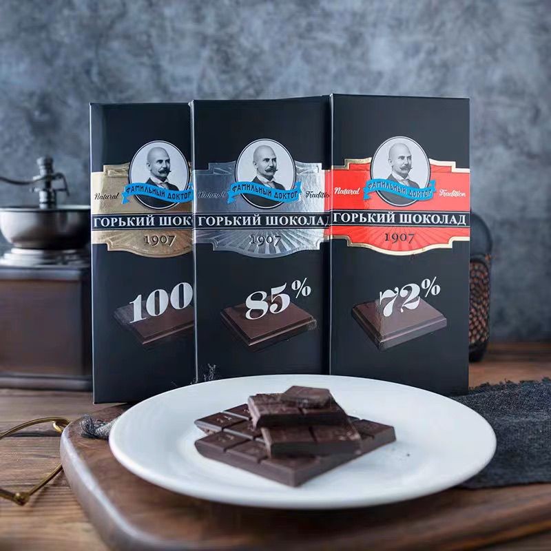 原裝進口俄羅斯教授黑巧克力純可可脂72%85%100%高濃度純黑巧盒裝
