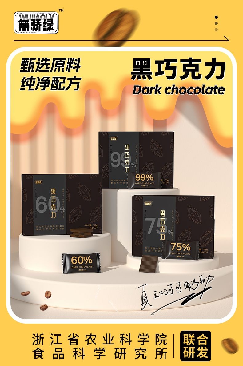 心心相印 3盒裝浙江農科院純黑巧克力純可可脂無添加蔗糖運動健身解饞零食