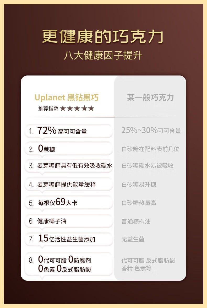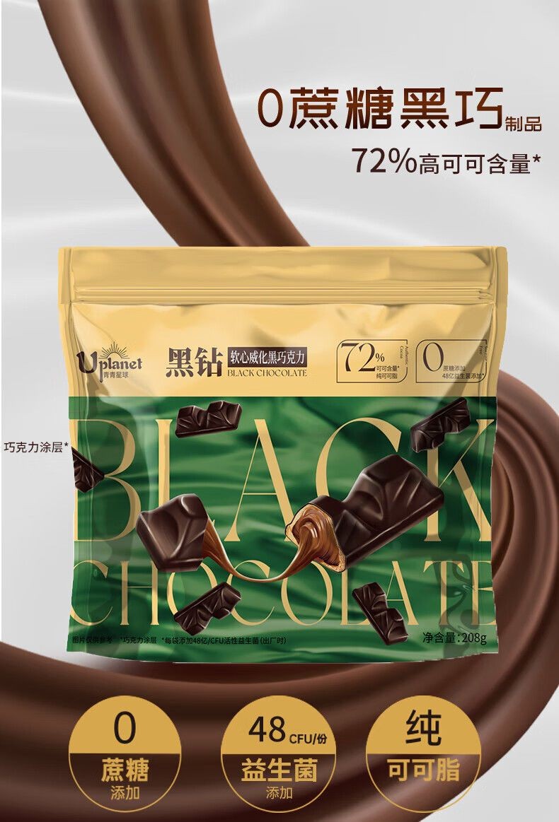 心心相印 【保質期到12月】Uplanet青青星球0蔗糖黑巧克力軟心純可可脂網紅