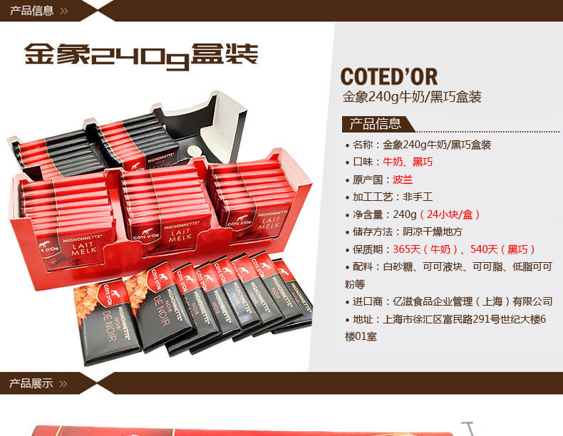 心心相印 波蘭進口零食 克特多金象黑巧克力/牛奶巧克力排塊240g 節日禮物