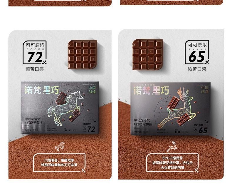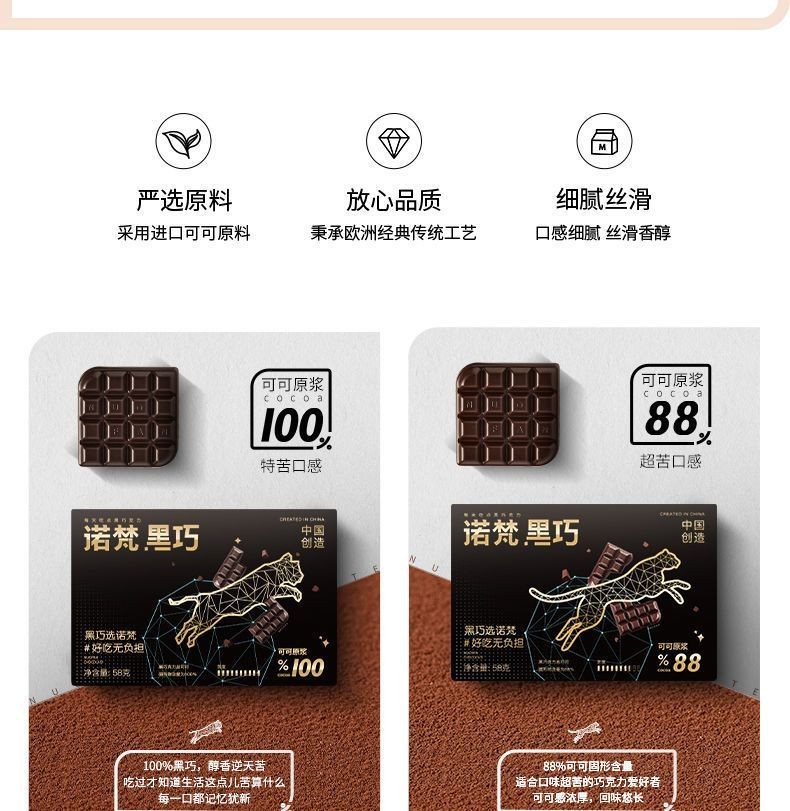 心心相印 諾梵黑巧克力可可脂烘焙健身代餐解饞休閒小零食58g單獨包裝多盒