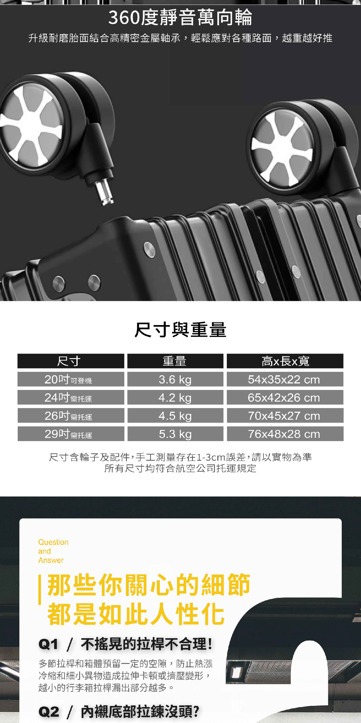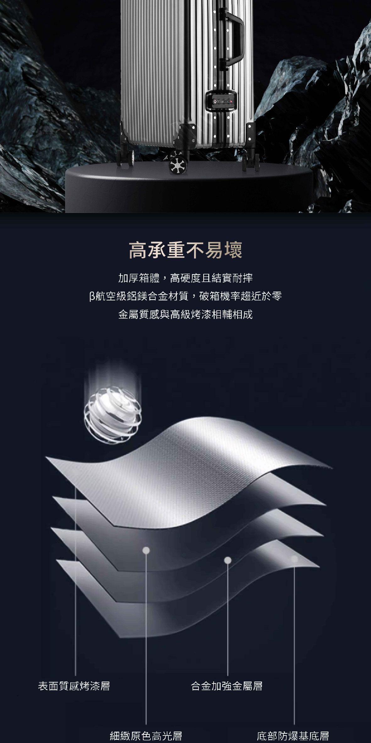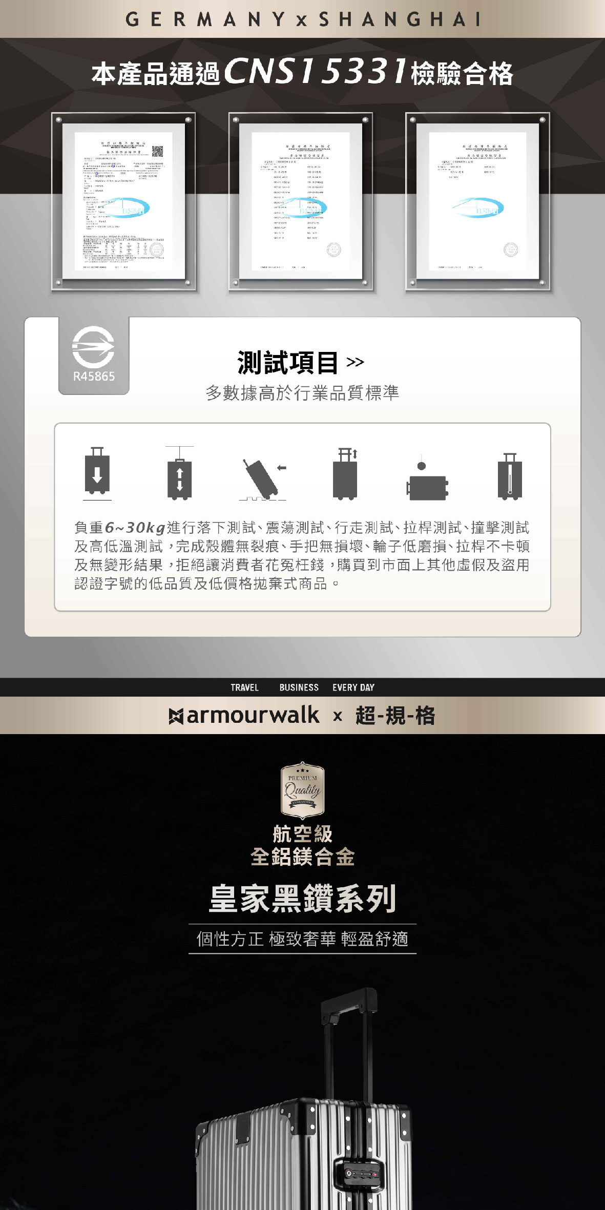 【armourwalk 歐沃】超規格 皇家黑鑽行李箱 航空級鋁鎂合金 20/24/26/29吋 全鋁行李箱 行李箱