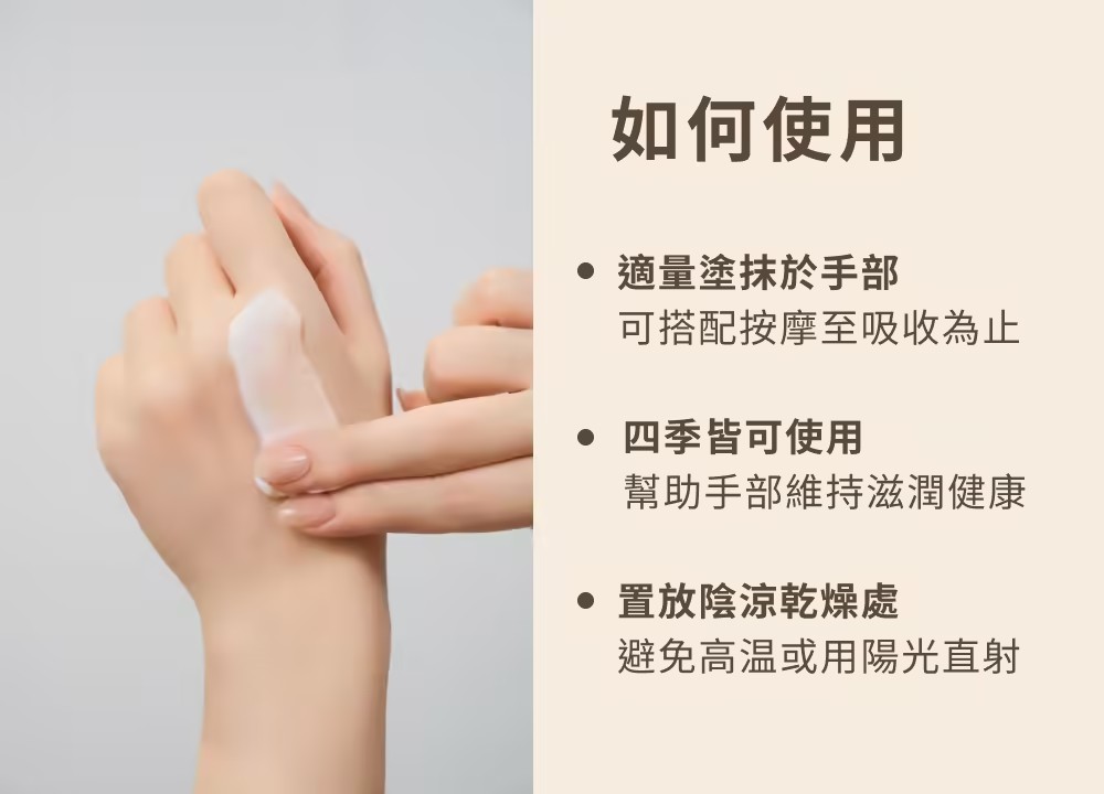+ 質地易推不黏膩·維持手部潤澤·四季適用