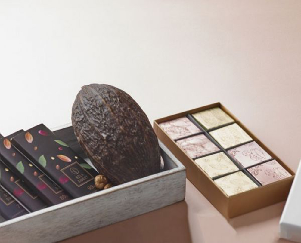 小型農場的稀有可可在經採傳統技法加工後,成為歐盟認證的有機可可。由其製成的100%極黑巧克力有著堅果、草本與烤麵包的香氣,而淡淡的焦香與甘甜的椰香也是可可本身自帶的風味,讓這款黑巧在微苦之中富有餘味。 24片裝 (每片平均重量5g)