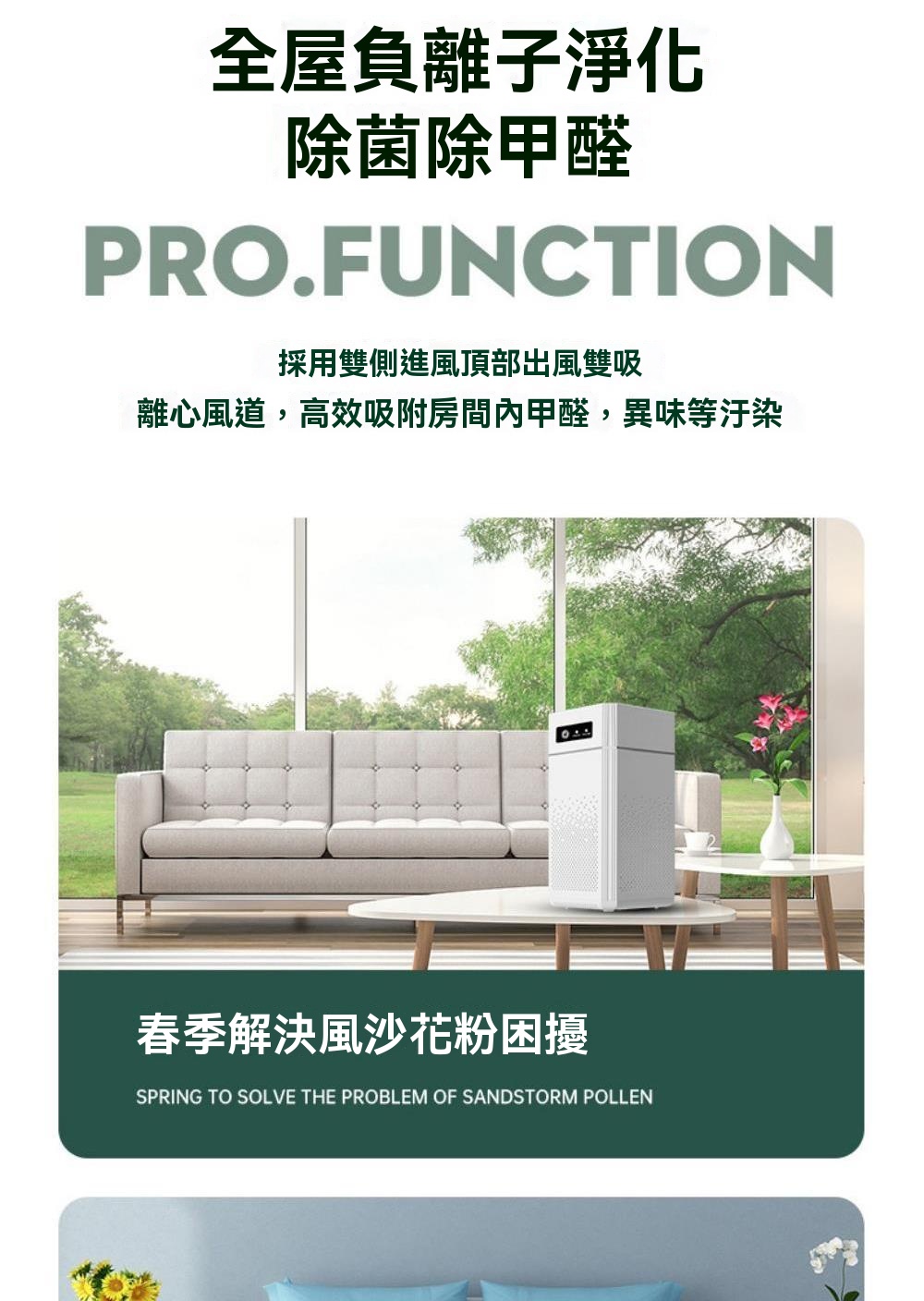 CADR值 :甲醛CADR500m³/h|顆粒物CADR800m³/h