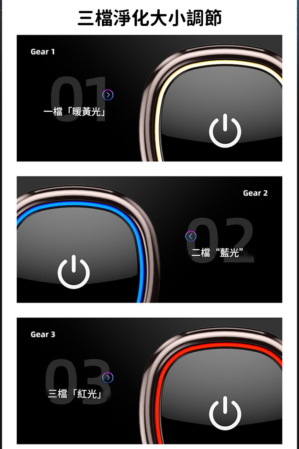 一檔暖黃光(低風量)、二檔藍光(中風量)、三檔紅光(高風量)