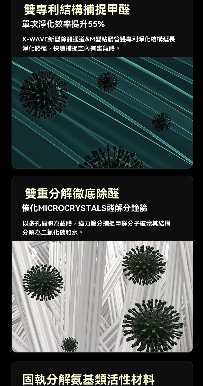 凈化汙染物 :甲醛/二手煙/花粉/VOC