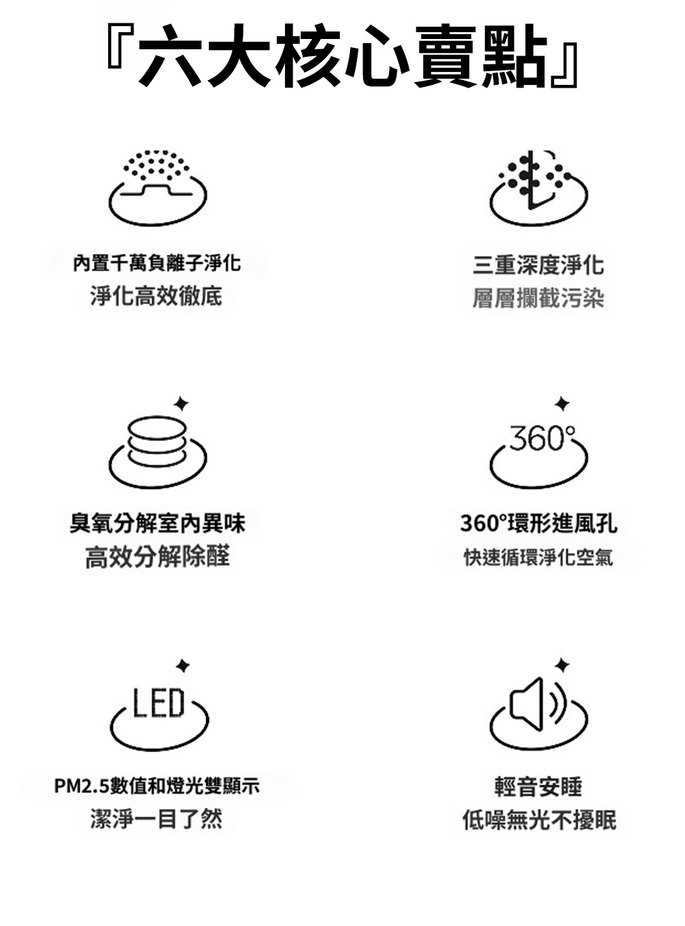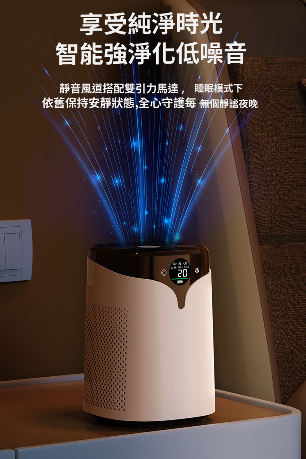 采用直流無刷電機,配合降噪風道優化,運行噪音低至30分貝;無光設計不擾睡眠,是臥室安睡的貼心之選