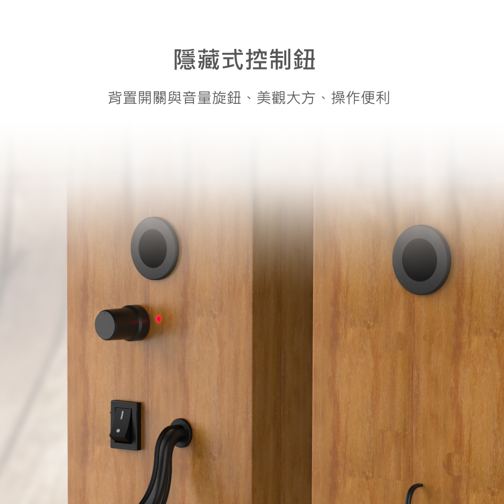 ■ 便利面板控制:電源與音量控制隱藏於喇叭背面,美觀避免誤觸