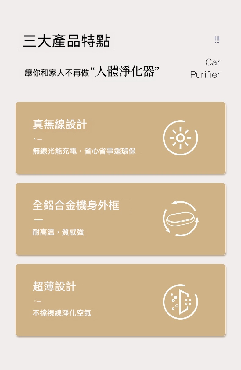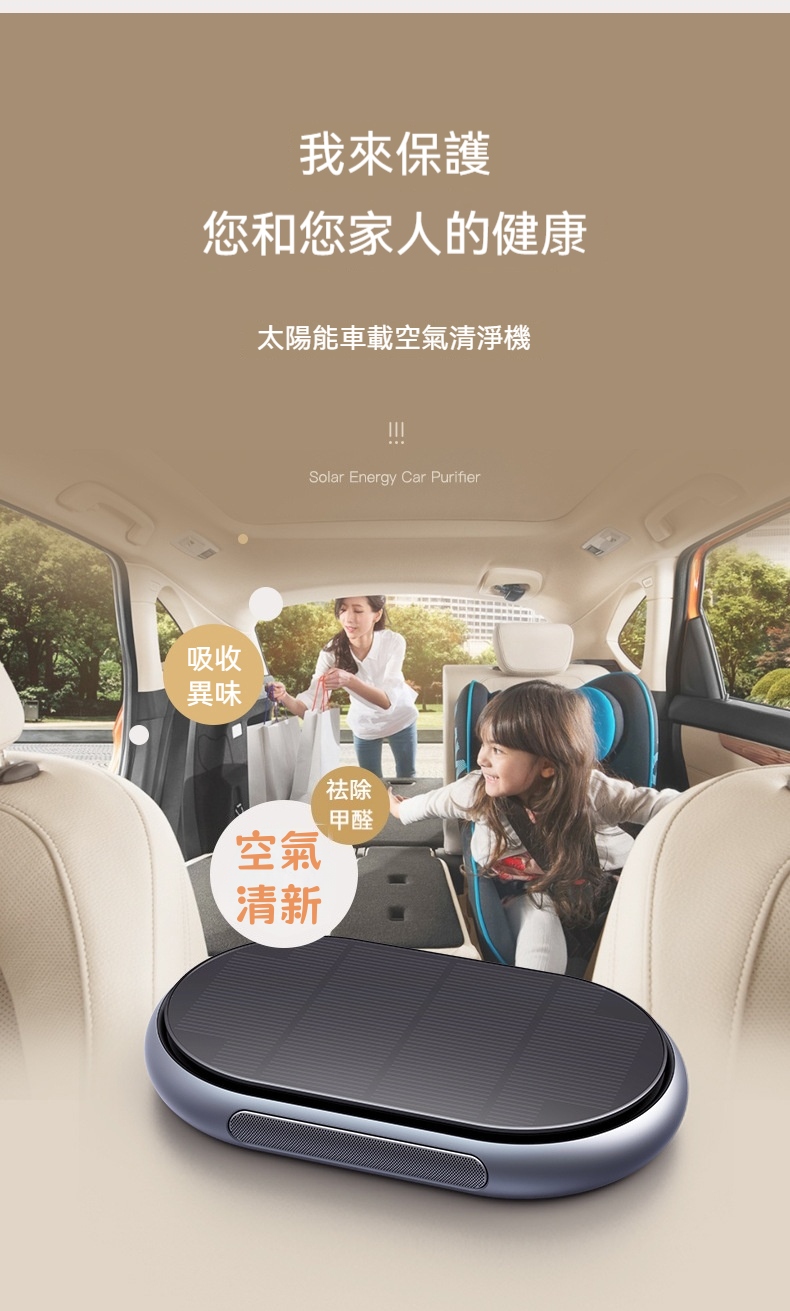 【諾必行】太陽能車載空氣凈化器 車用空氣清新機(負離子/除異味/二手煙/車用臭氧機/車內除臭)
