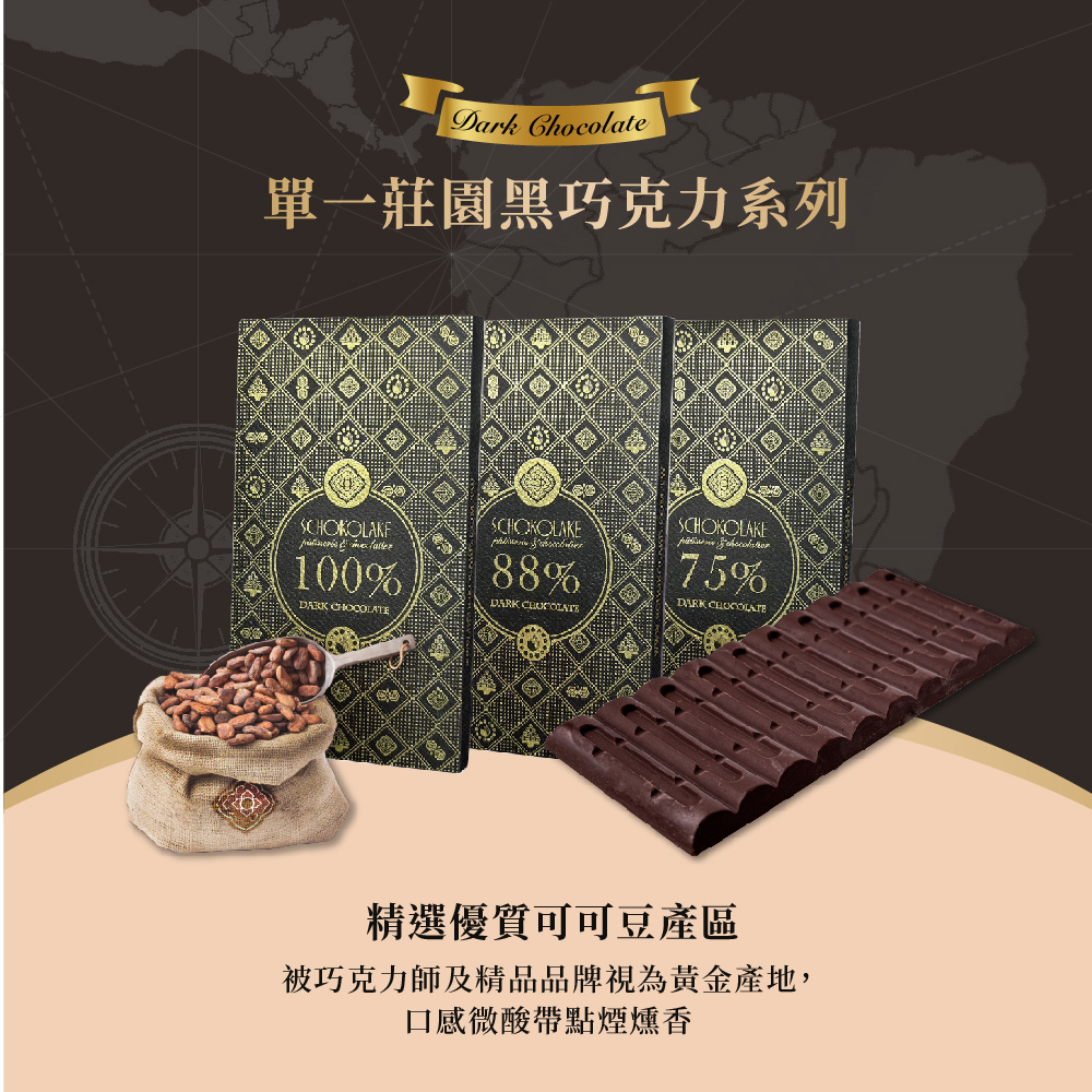 【巧克力雲莊】單一莊園黑巧克力系列(100%/88%/75%)