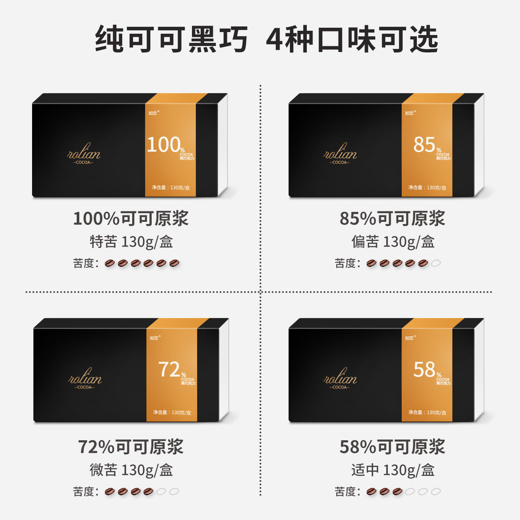 心心相印 純可可脂黑巧克力100%0蔗糖辦公室網紅健身零食小喫禮盒裝可可豆