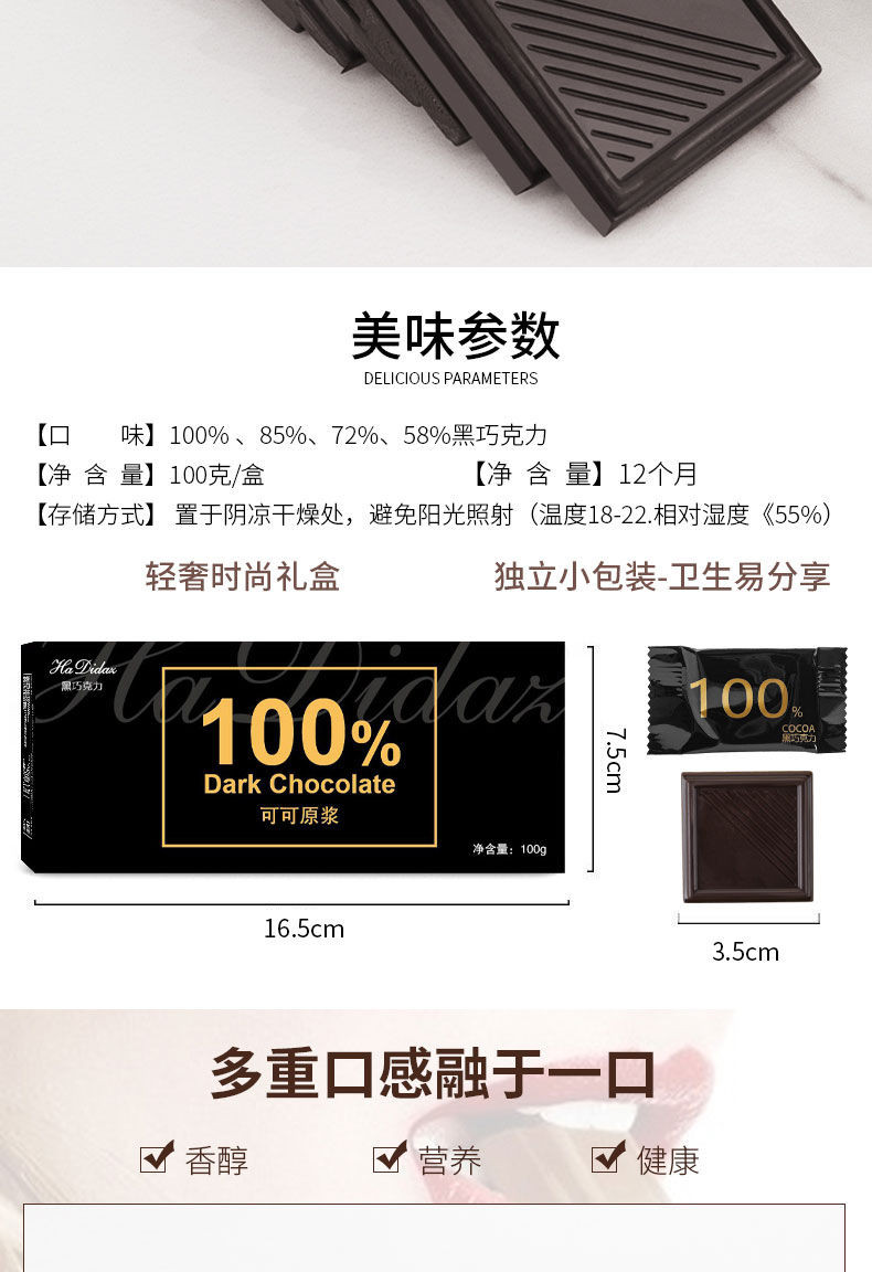 心心相印 瑞士風味100%純黑巧克力禮盒裝進口可可粉極苦無蔗糖純可可脂零食