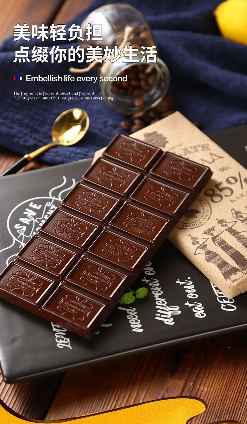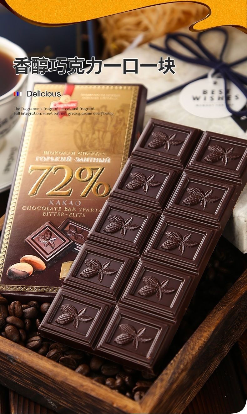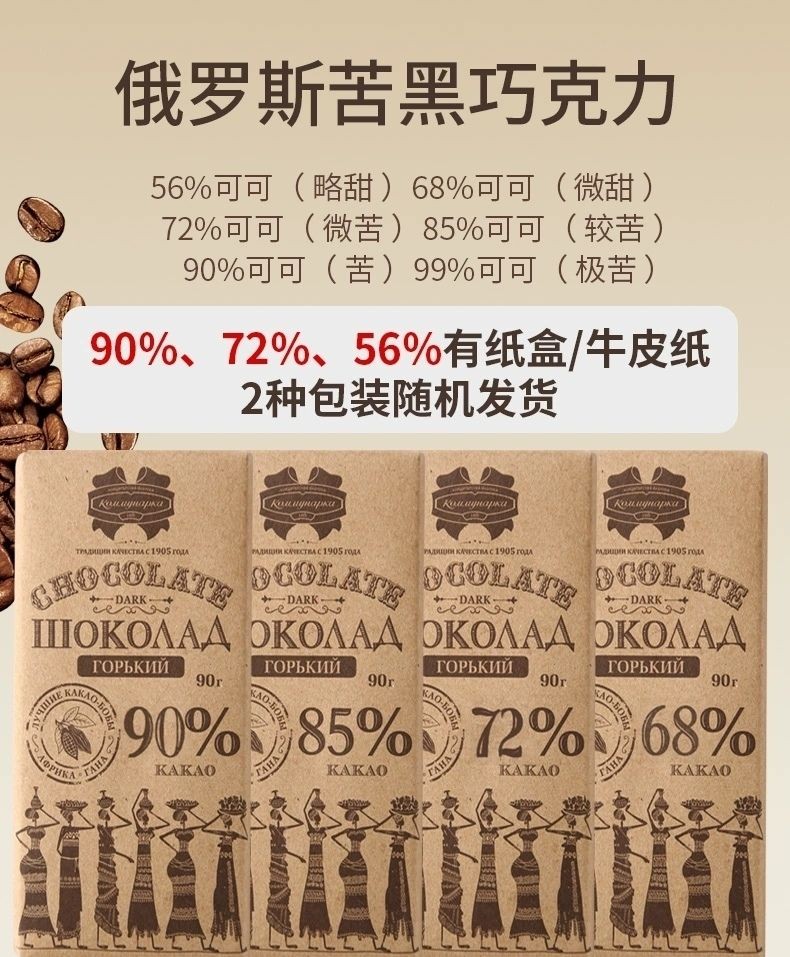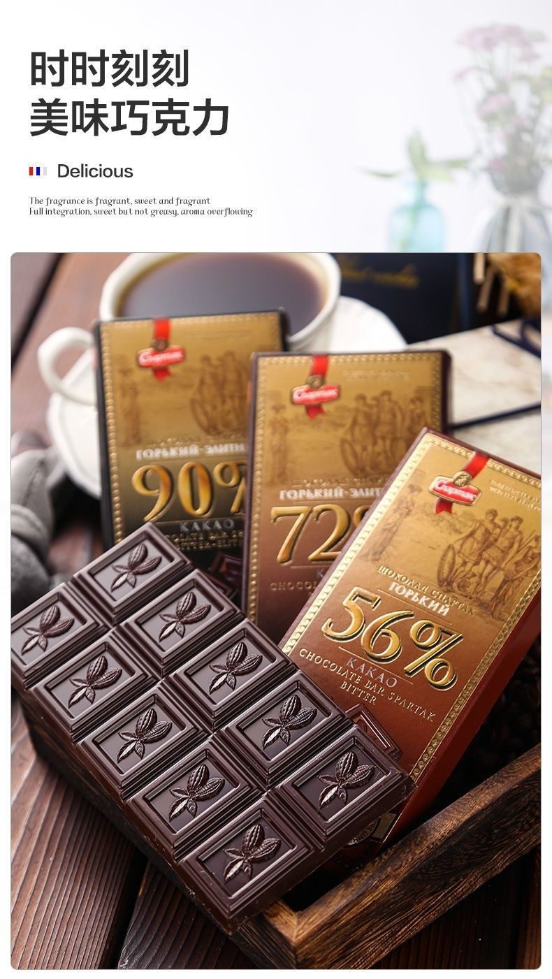 心心相印 俄羅斯進口黑巧克力組閤牛皮紙盒裝72%90%純可可脂健身特苦零食
