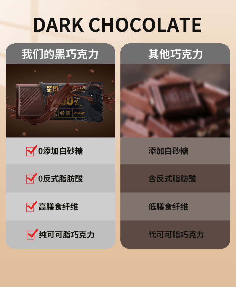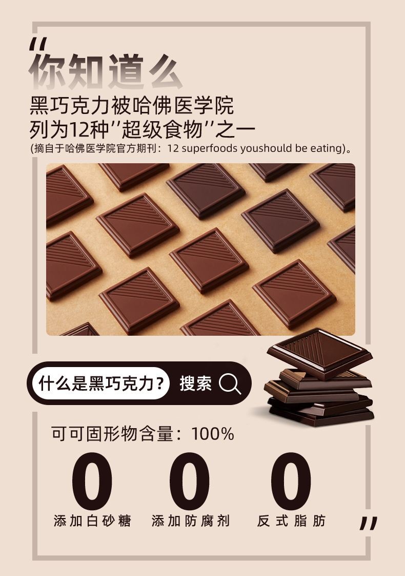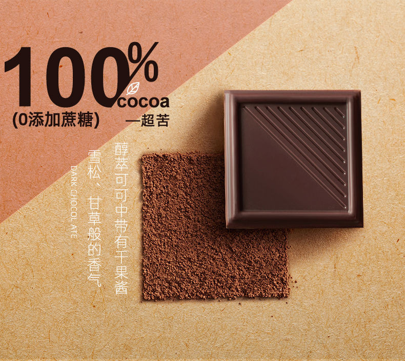 心心相印 純黑巧克力零添加蔗糖純可可脂健身休閒解饞零食闢穀輕食黑巧烘焙