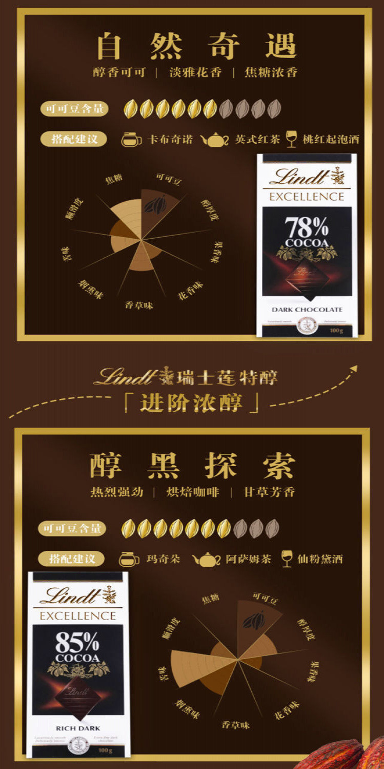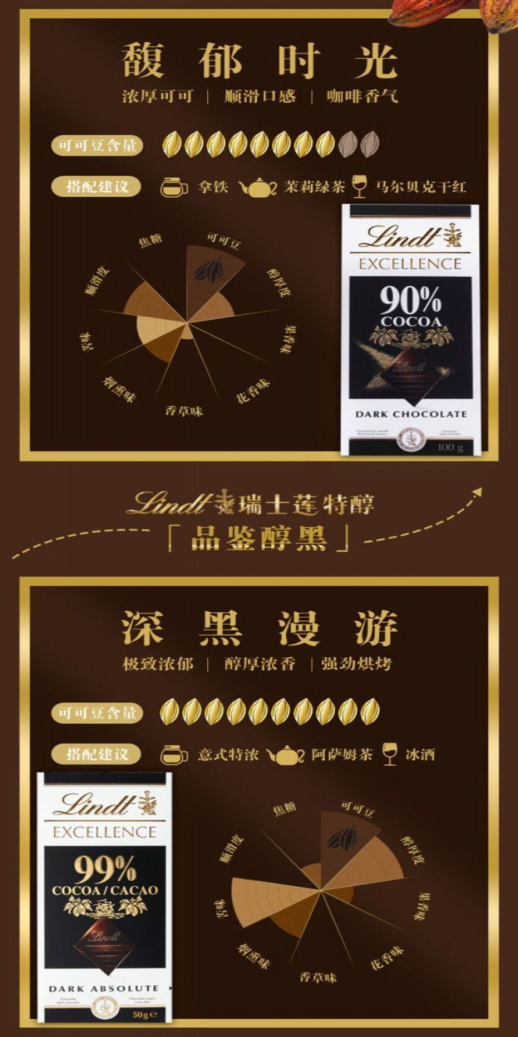 心心相印 Lindt瑞士蓮巧克力特醇排塊85%90%進口可可黑巧克力正品純可可脂
