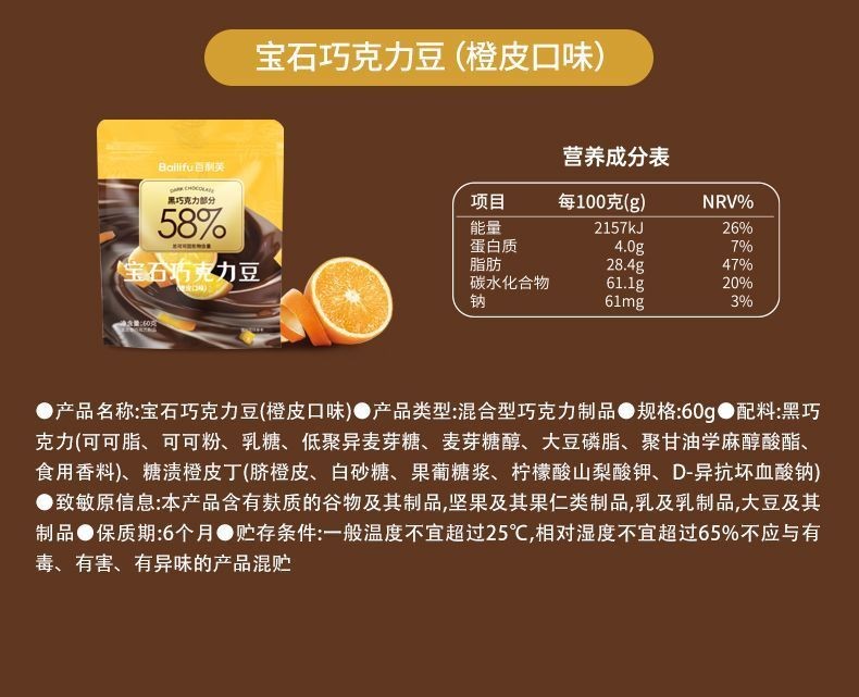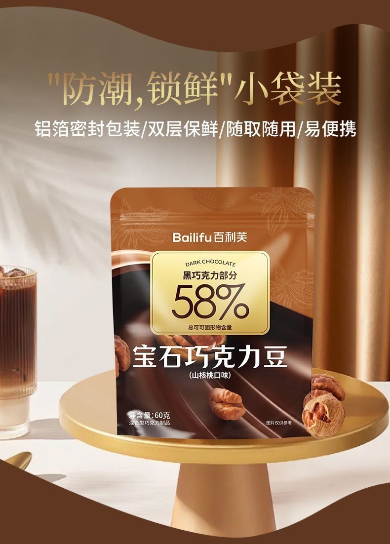 心心相印 BAILIFU寶石巧克力豆黑巧堅果仁山核桃蔓越莓橙皮黑巧休閒小零食