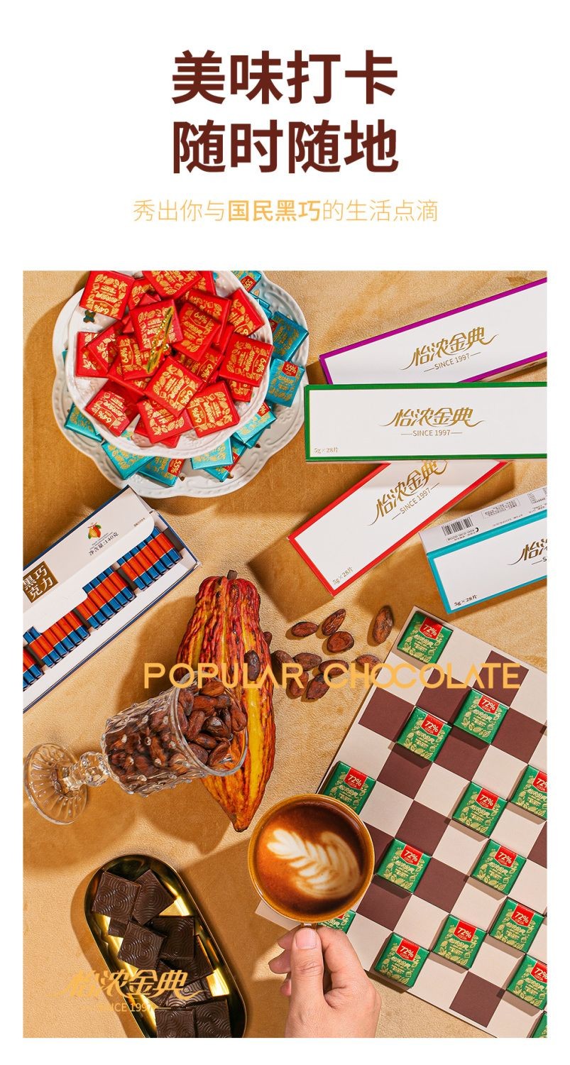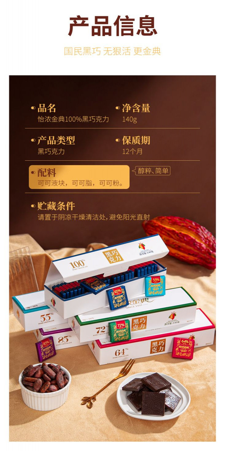 心心相印 怡濃金典100%黑巧克力純可可脂無添加蔗糖超苦零食烘焙禮盒裝140g