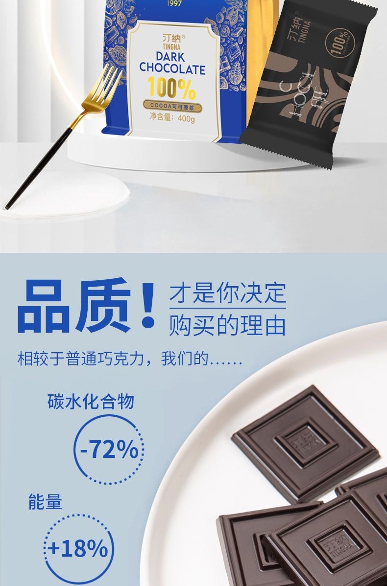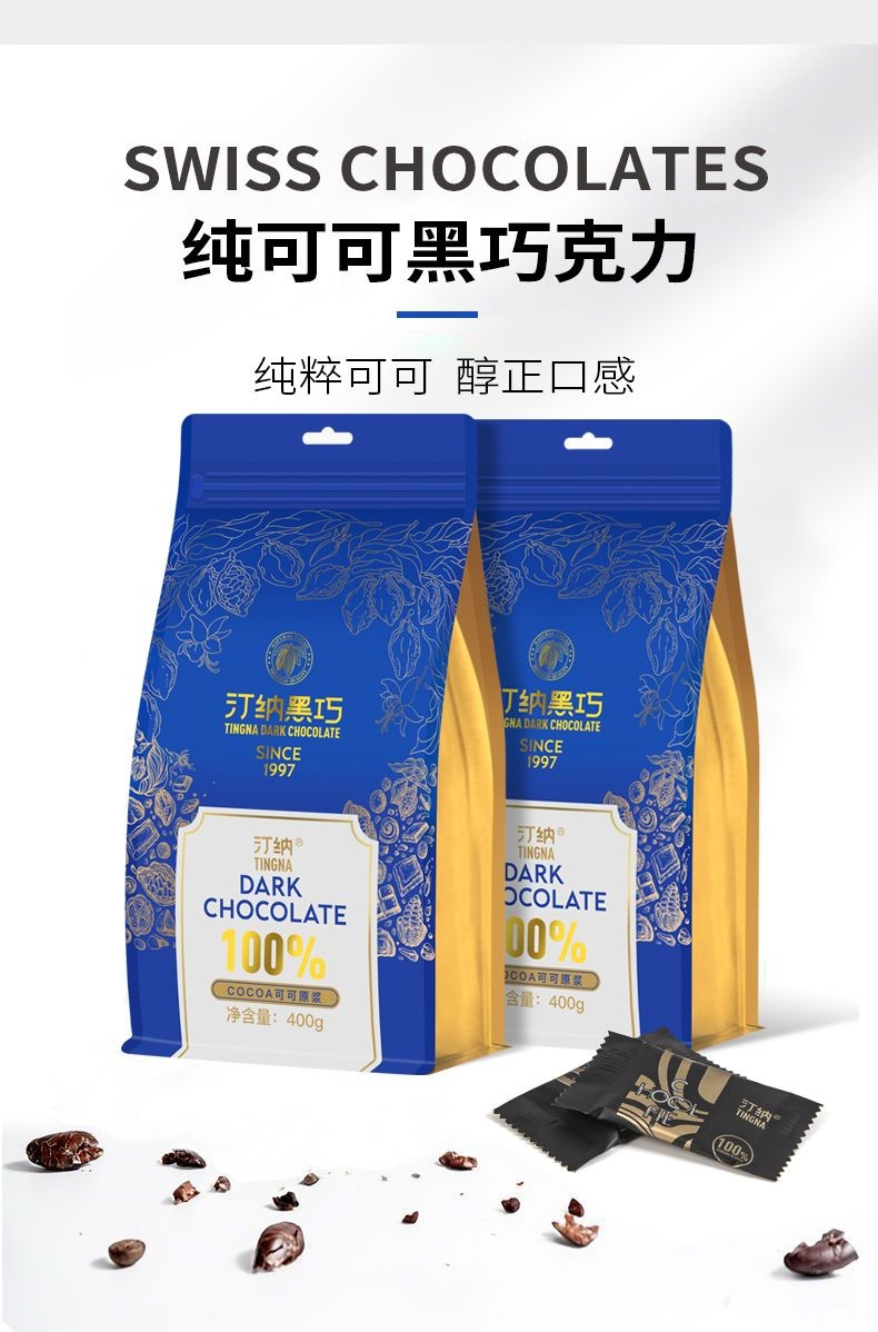 心心相印 汀納100%醇黑巧克力純可可脂無蔗糖健身零食量販袋裝400克80片