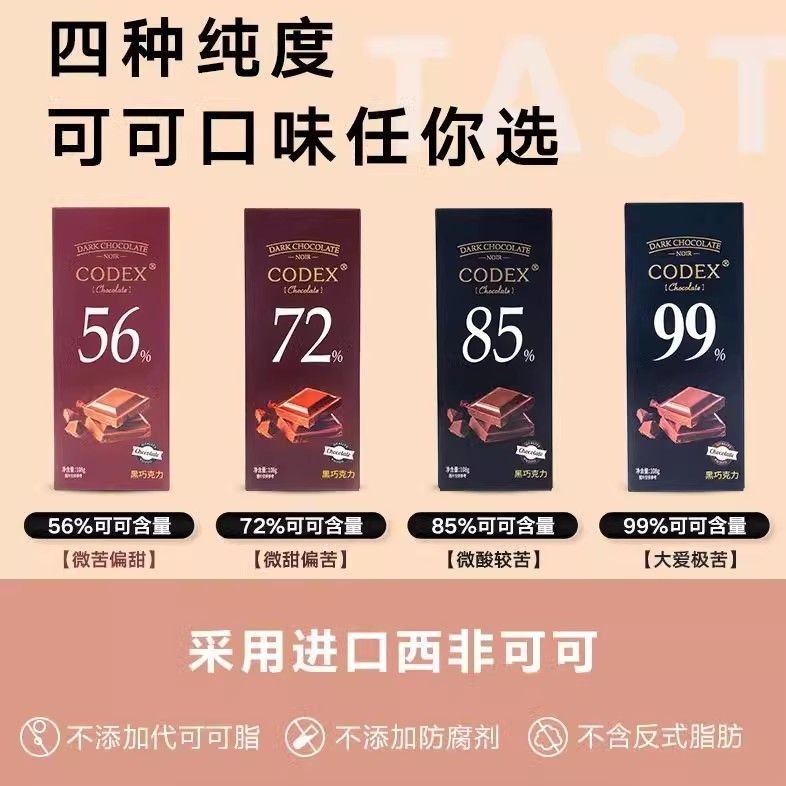 心心相印 【95%好評率】108gCODEX庫德士黑巧克力純可可脂休閒零食兒童朋友禮物99%85%72%