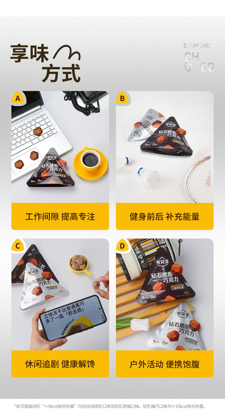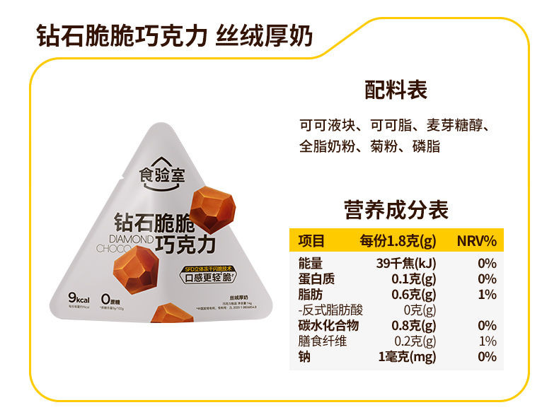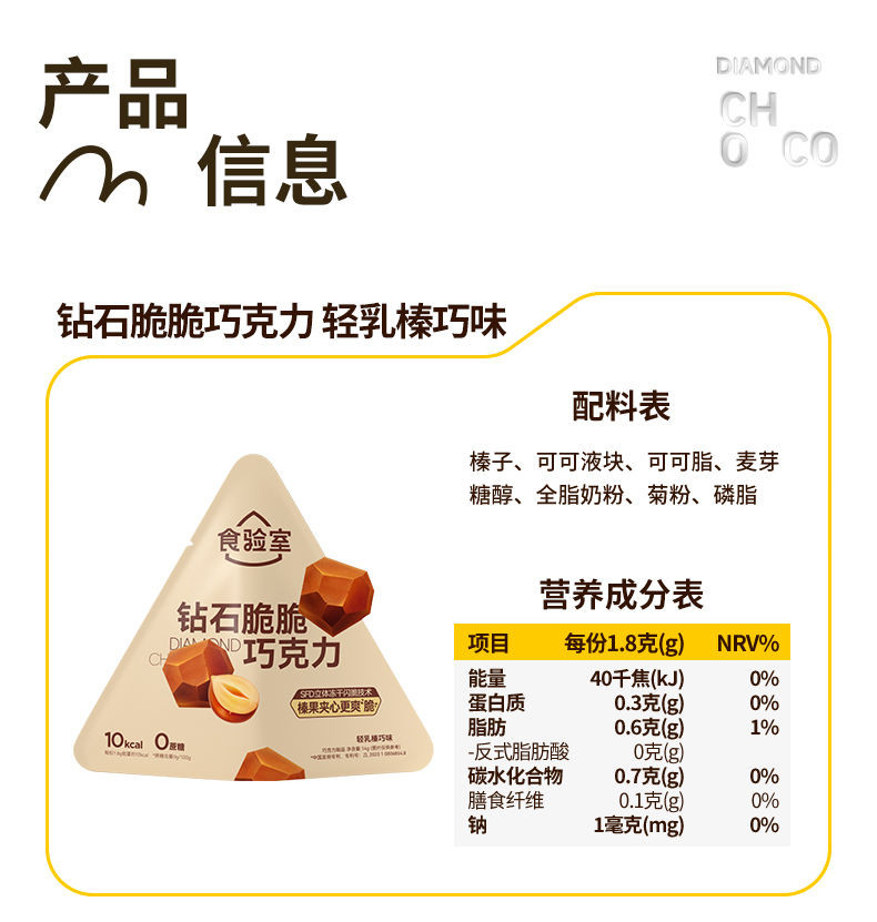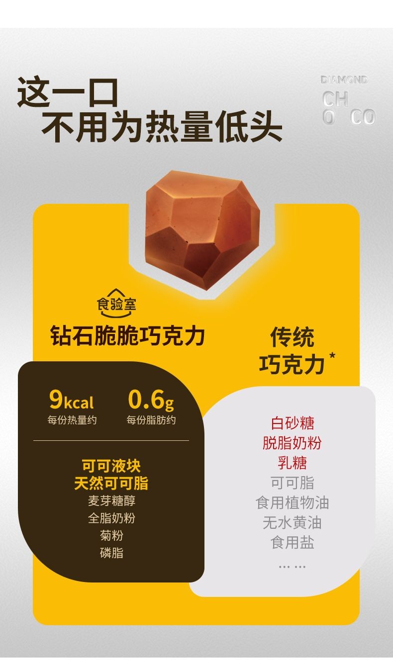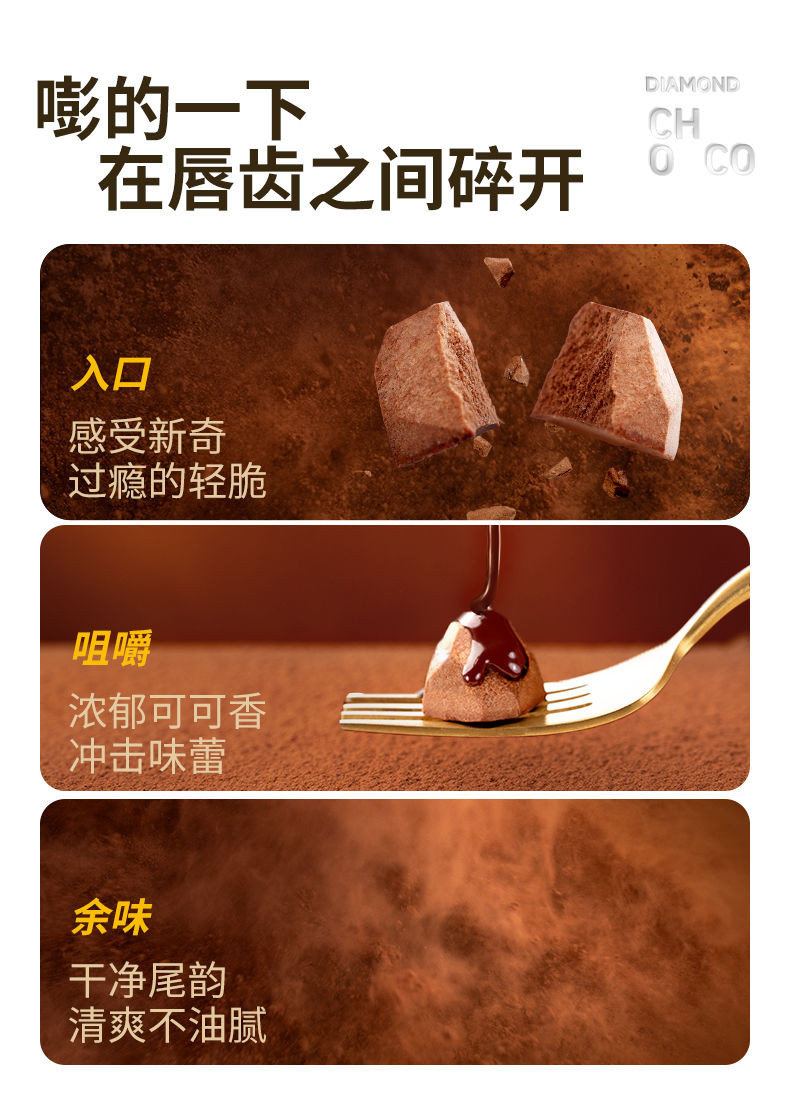 心心相印 食驗室凍幹巧克力鑽石脆脆巧克力0蔗糖純可可脂休閒零食牛奶黑巧