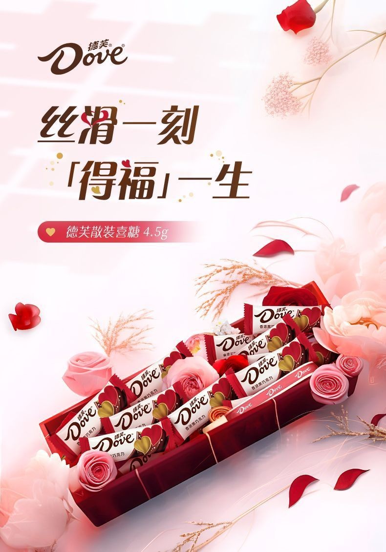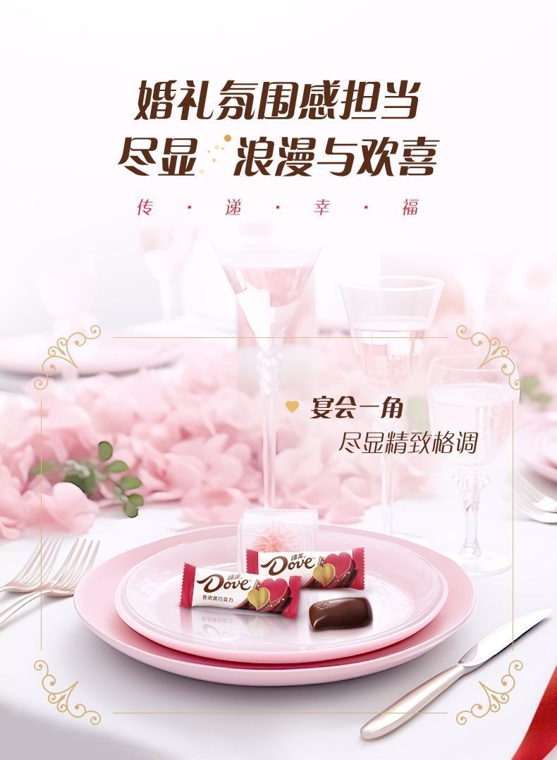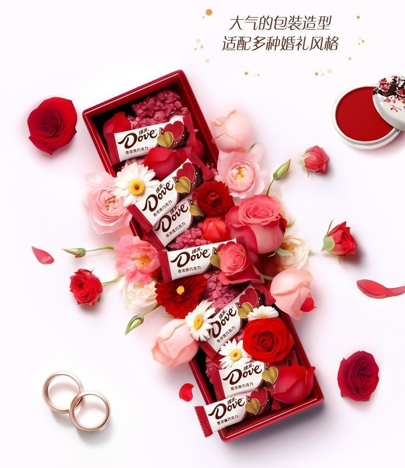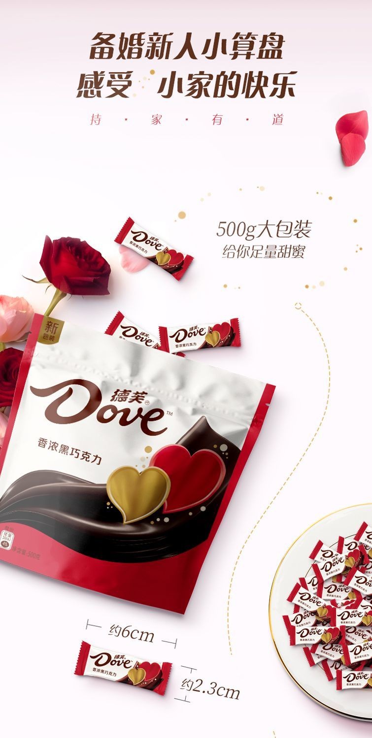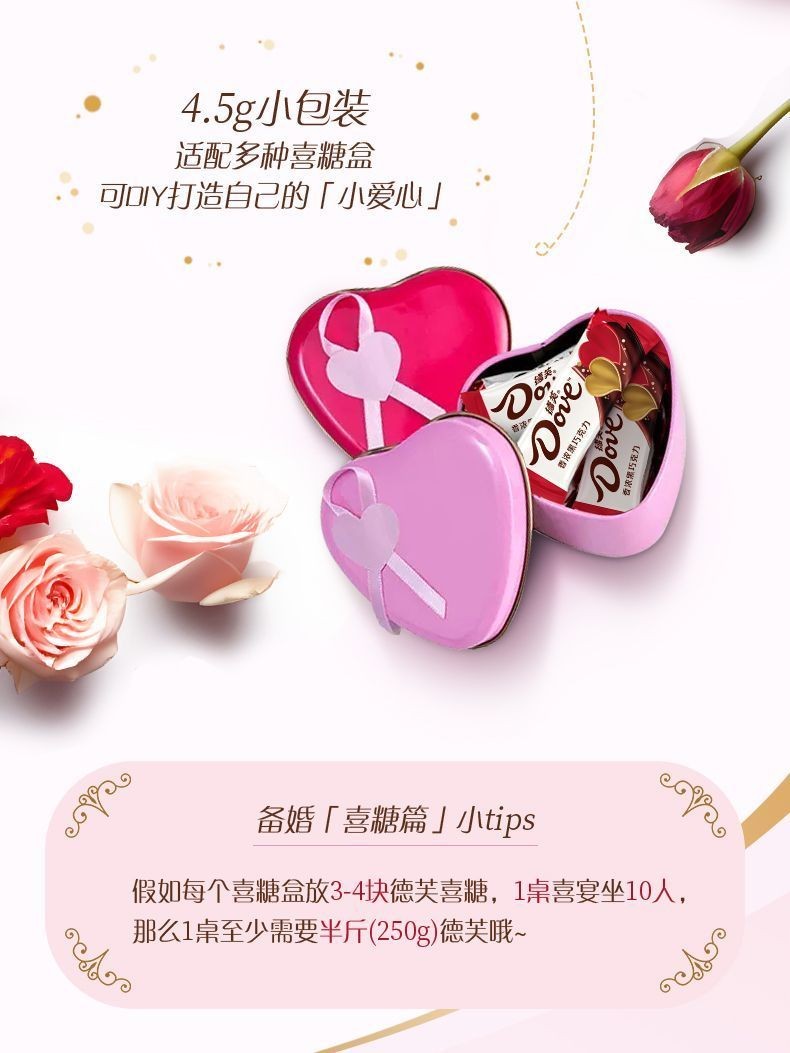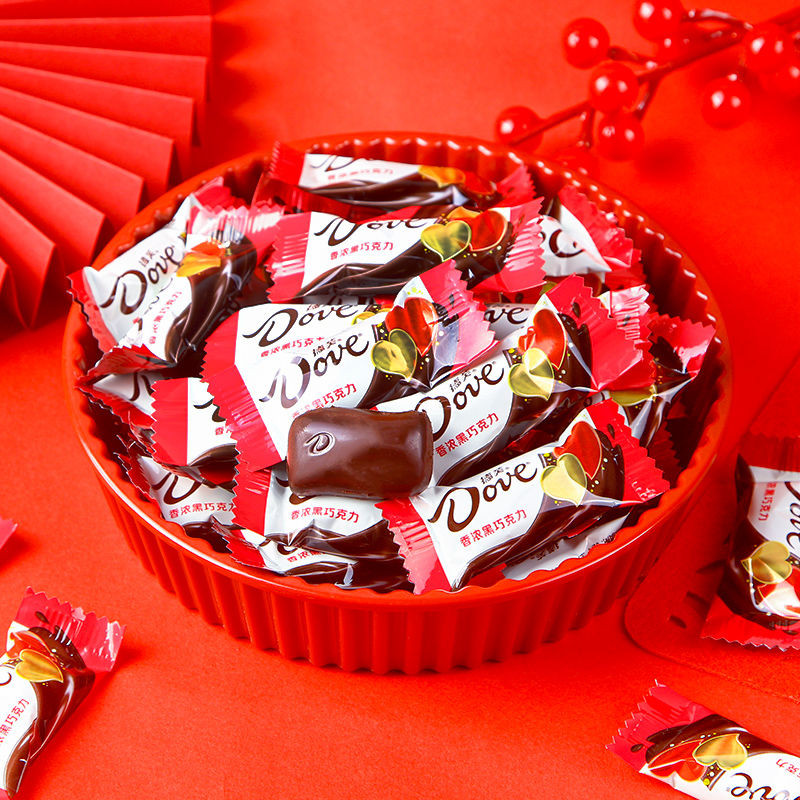 心心相印 【337.3萬人迴購該品牌】德芙4.5g香濃黑巧克力袋裝500g結婚婚慶喜糖休閒零食小喫糖果批髮