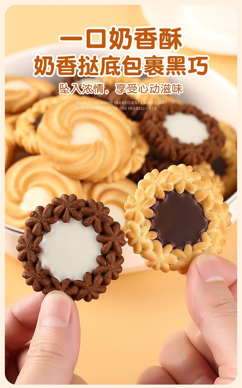 心心相印 黑白巧克力曲奇餅幹獨立包裝整箱夾餅幹白巧克力可可辦公室零食