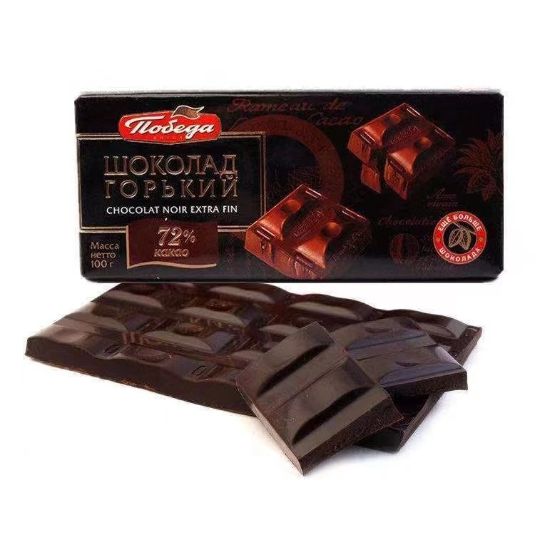 心心相印 俄羅斯進口勝利72%可可含量純黑苦巧克力休閒零食食品