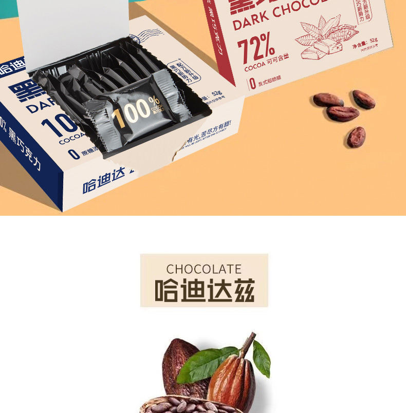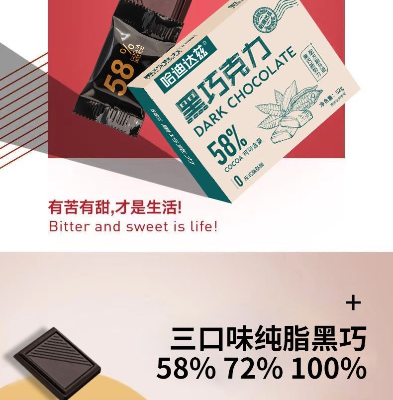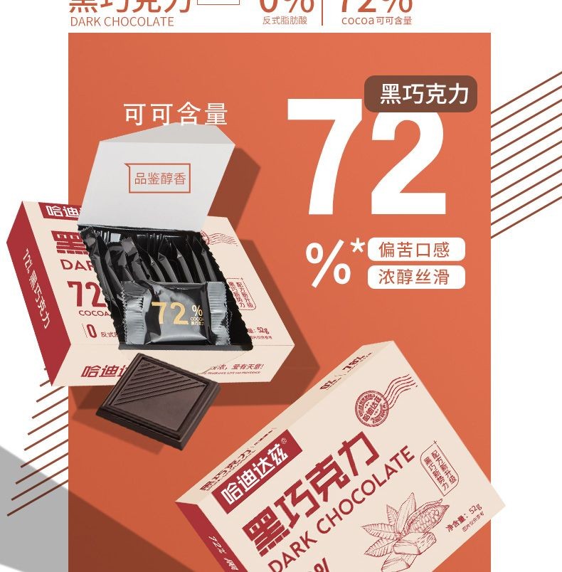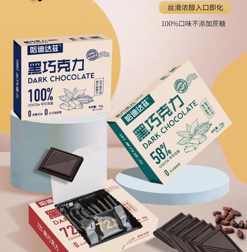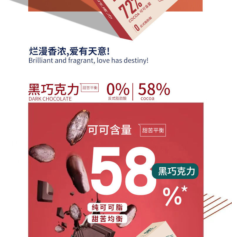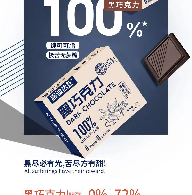 心心相印 【五盒醇黑巧克力】100%純可可脂飽腹代餐健身休閒零食禮盒裝