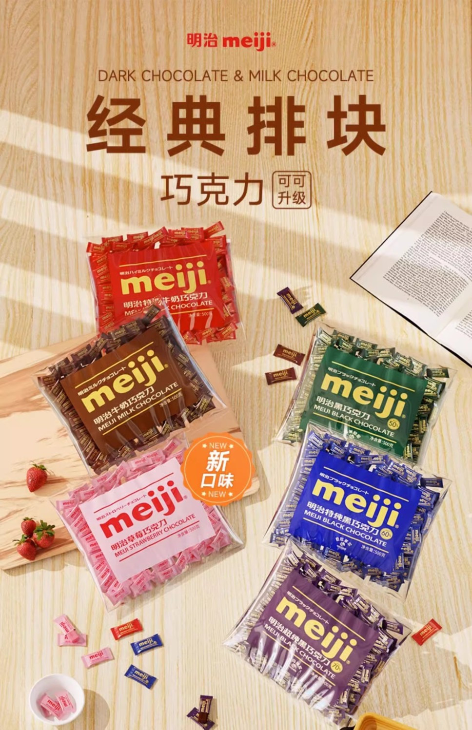 心心相印 Meiji明治排塊特濃牛奶特純黑巧克力 可可脂散裝婚慶喜糖休閒零食