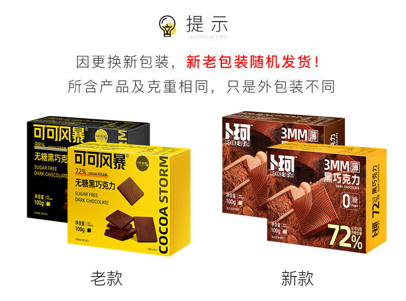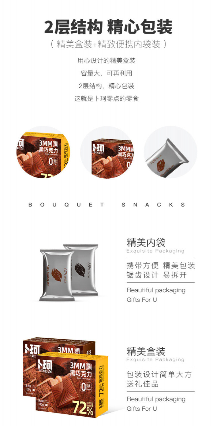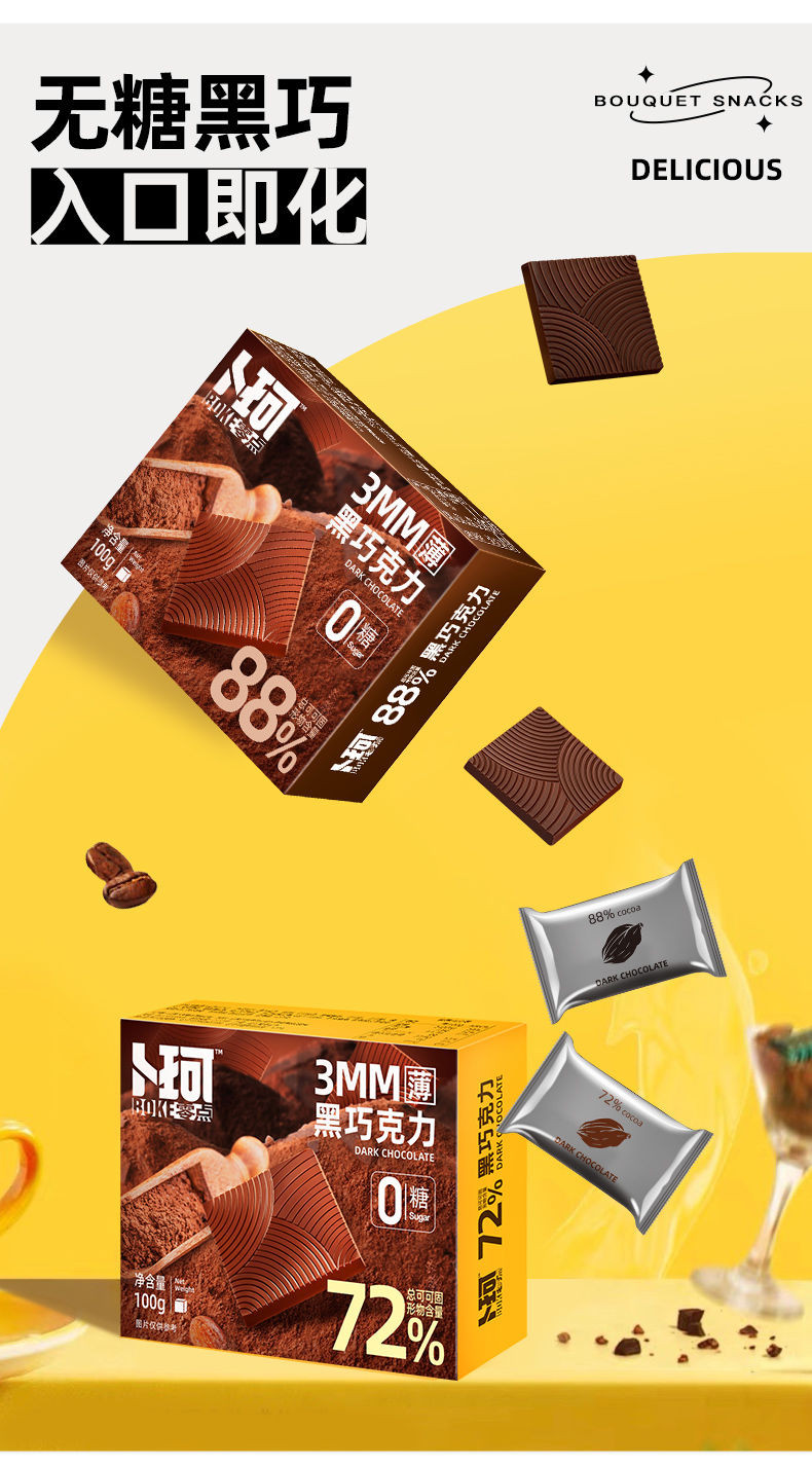 心心相印 蔔珂零點無蔗糖純黑巧克力純可可脂禮盒裝送女友休閒零食