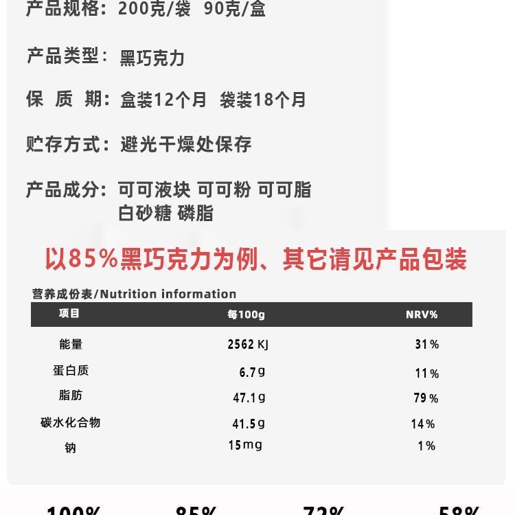 心心相印 黑巧克力俄羅斯風味無糖純可可脂純黑苦袋裝