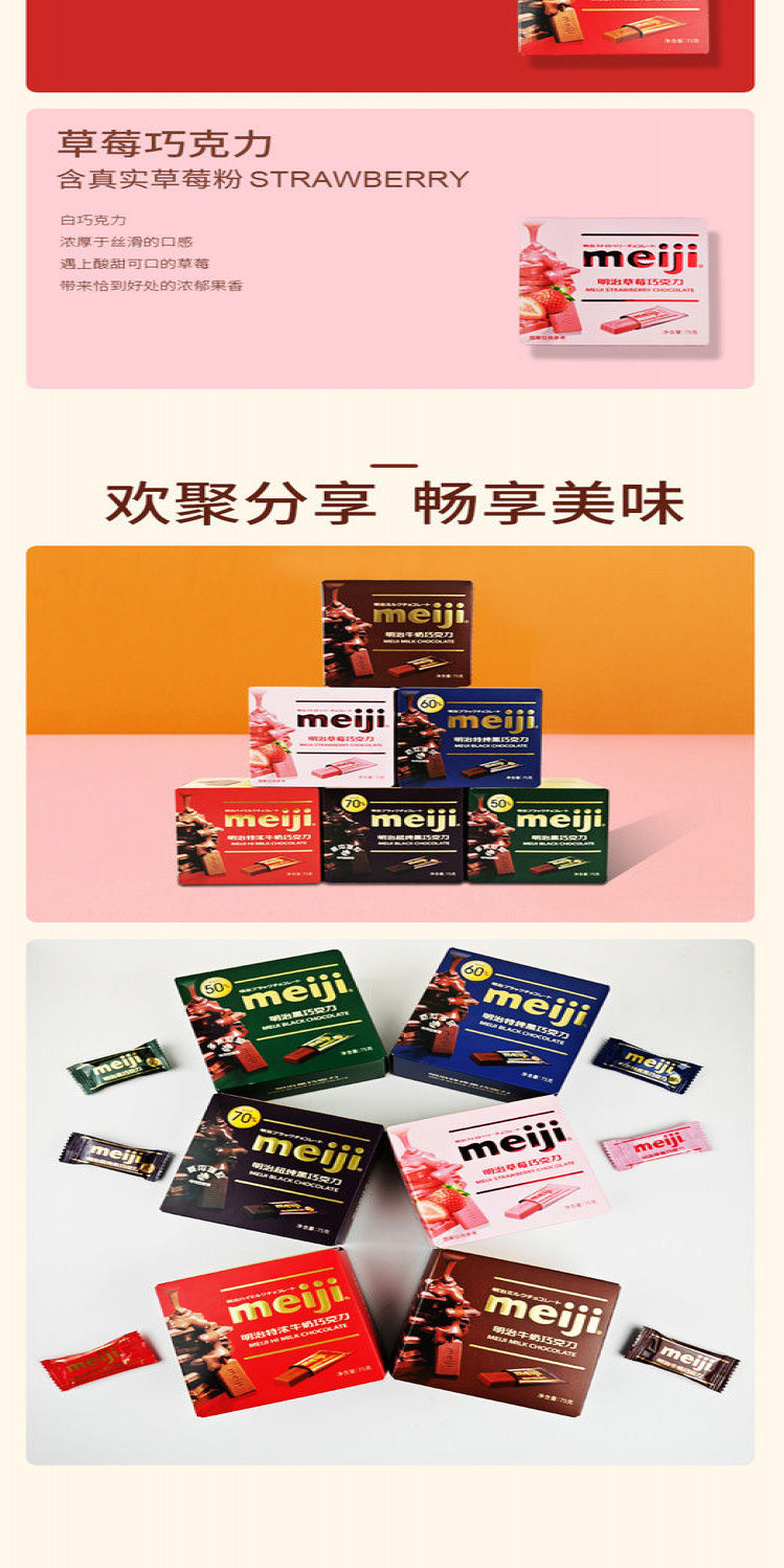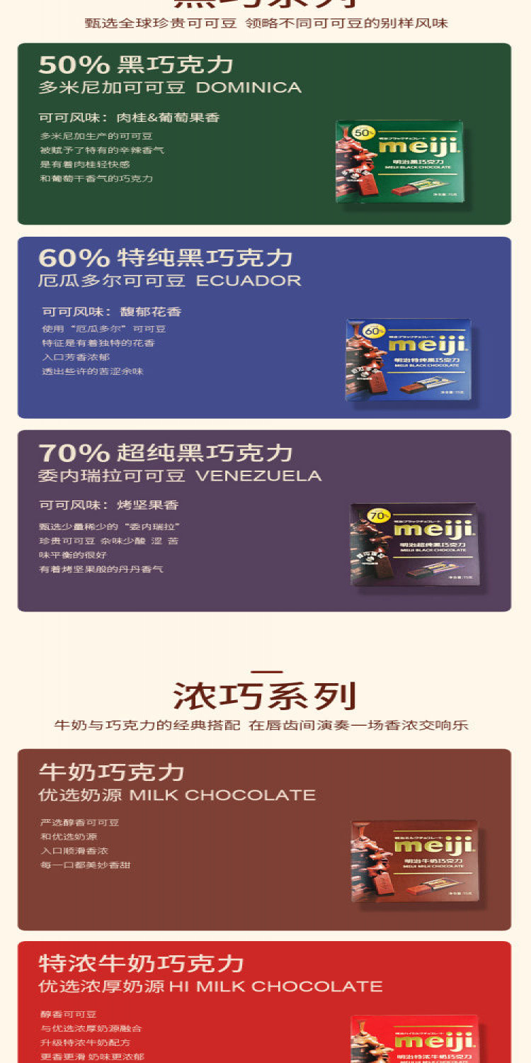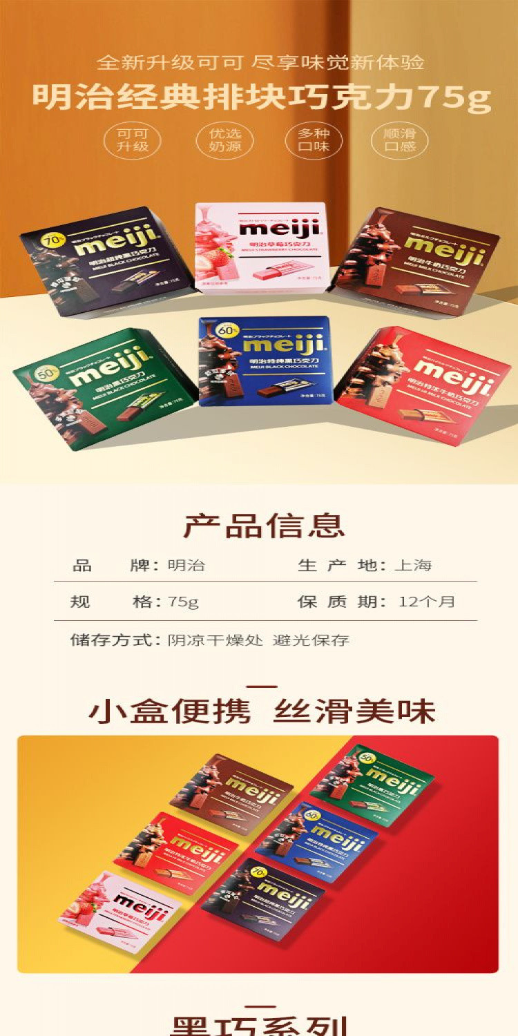 心心相印 明治Meiji經典排塊巧克力75g盒裝獨立包裝特濃牛純黑巧克力年貨