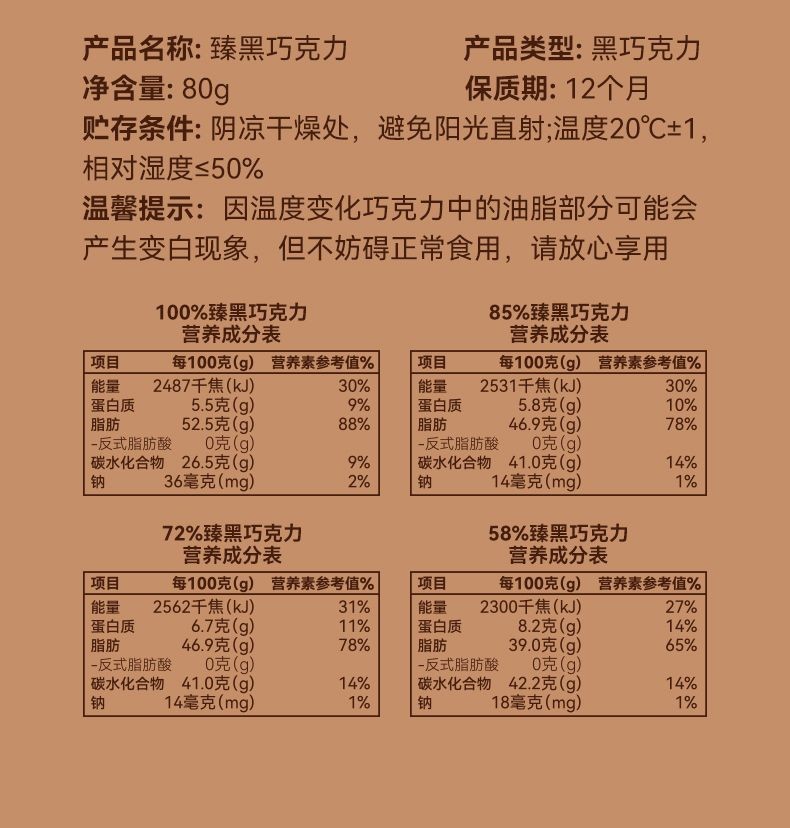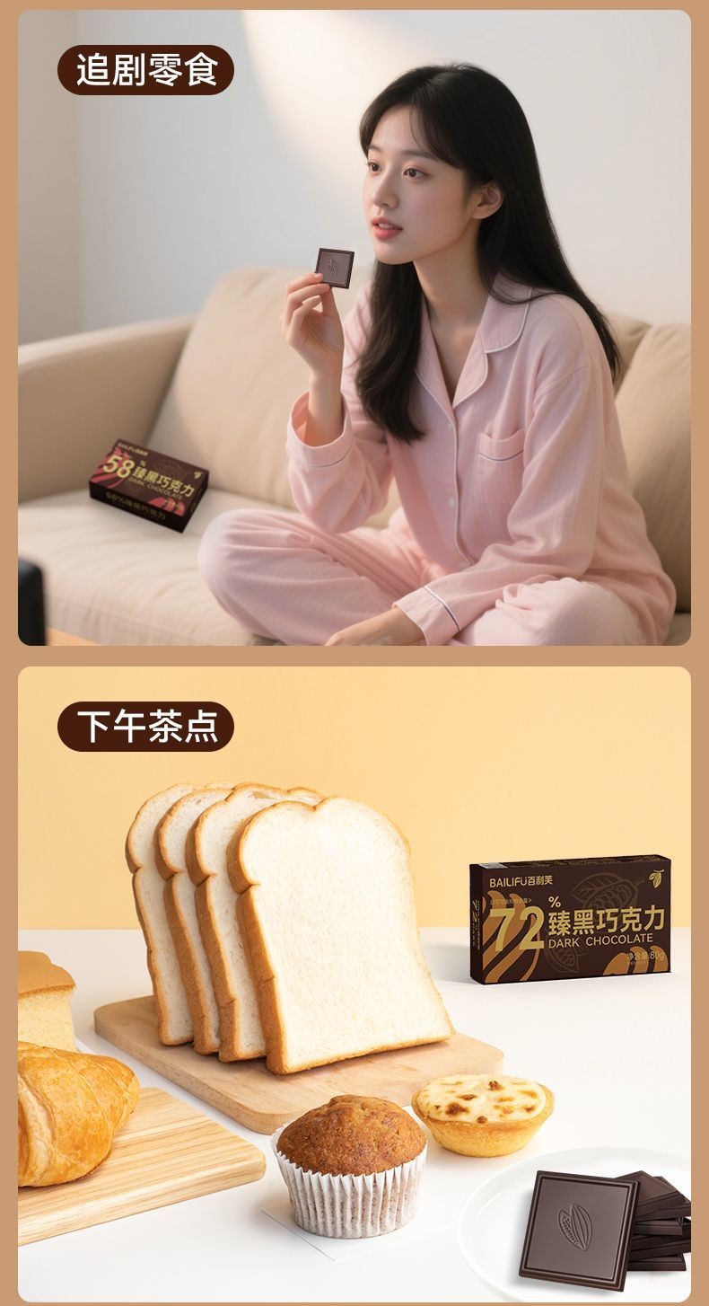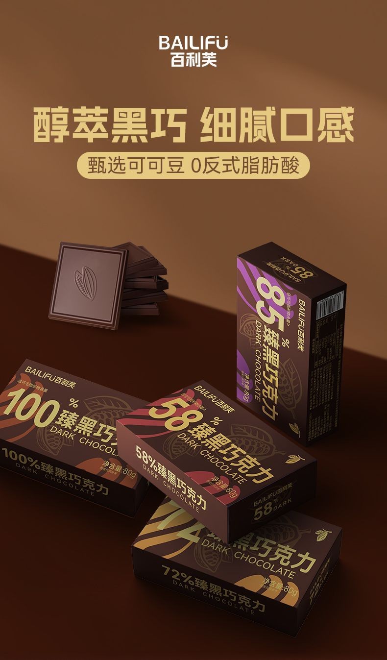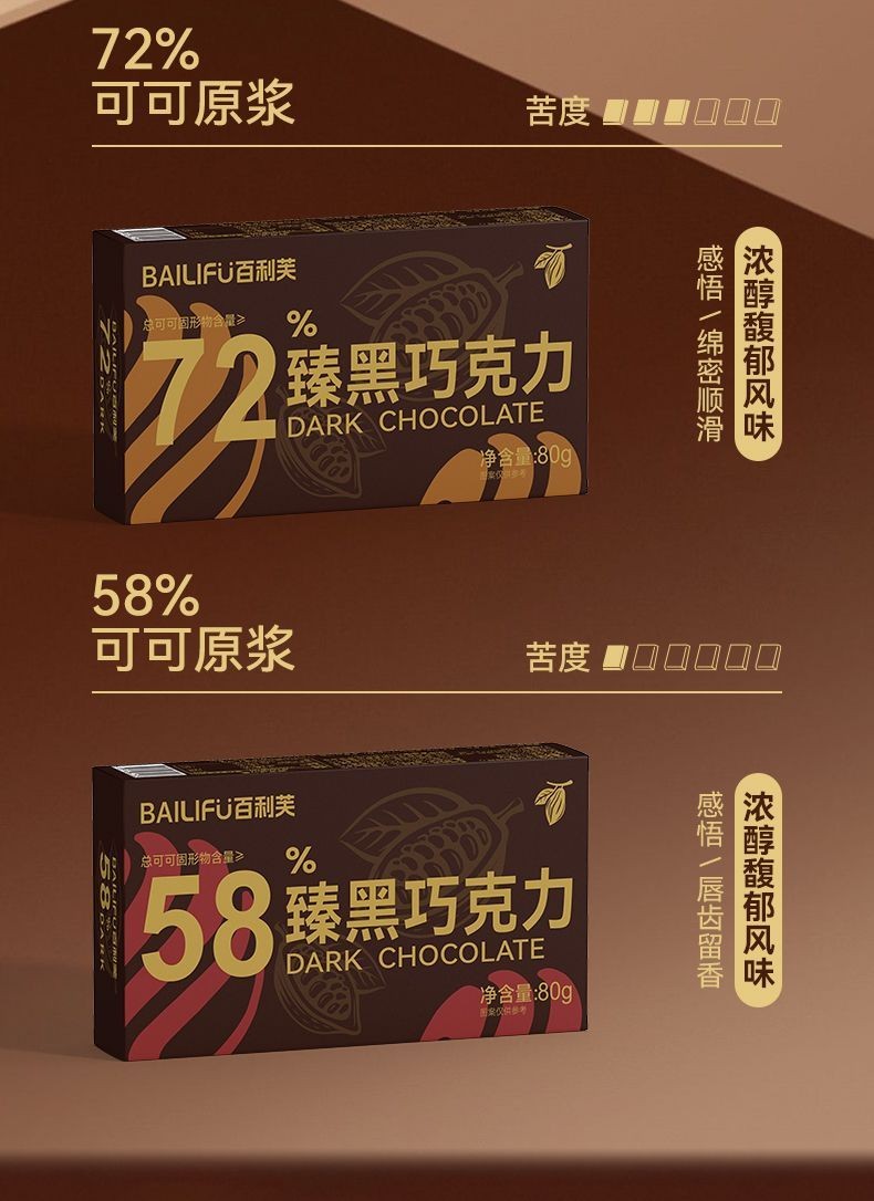 心心相印 百利芙黑巧克力純可可脂獨立包裝網紅健身盒裝解饞休閒送女友零食