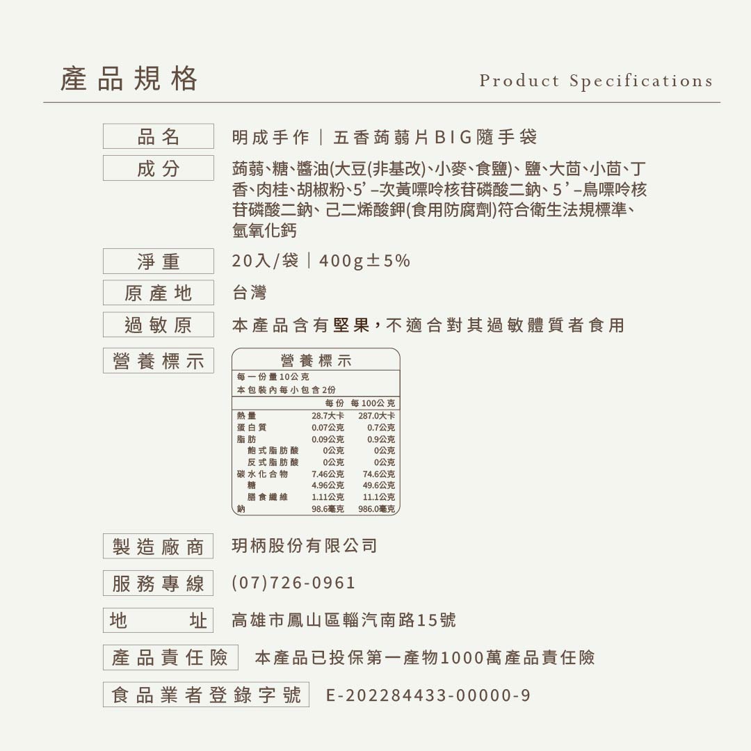 【MING CHENG 明成手作】BIG隨手袋系列《五香蒟蒻片》五香/Q彈有嚼勁/大份量/蒟蒻乾/零食/點心/隨手包/聚會/團購