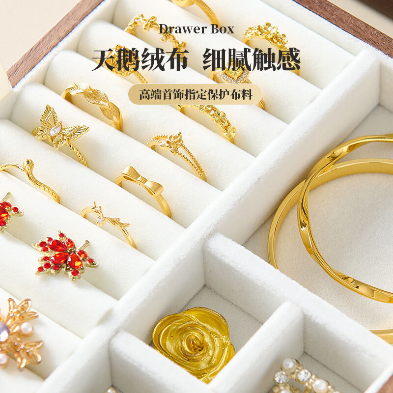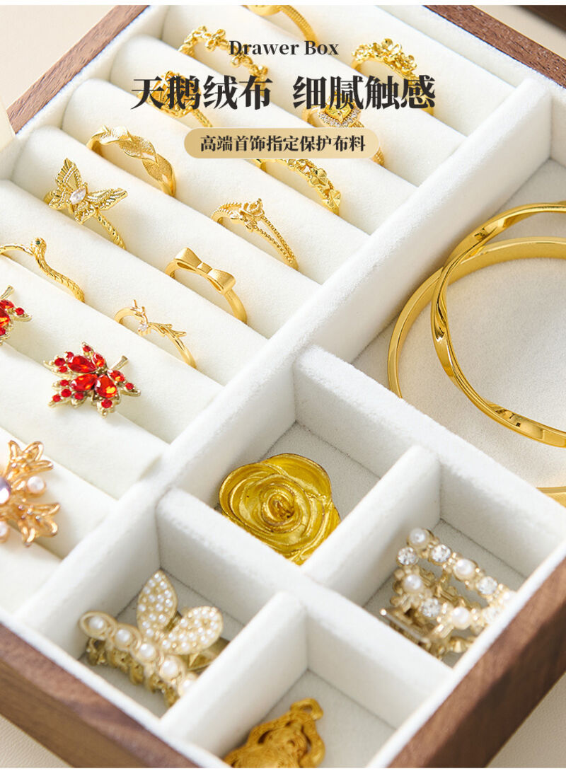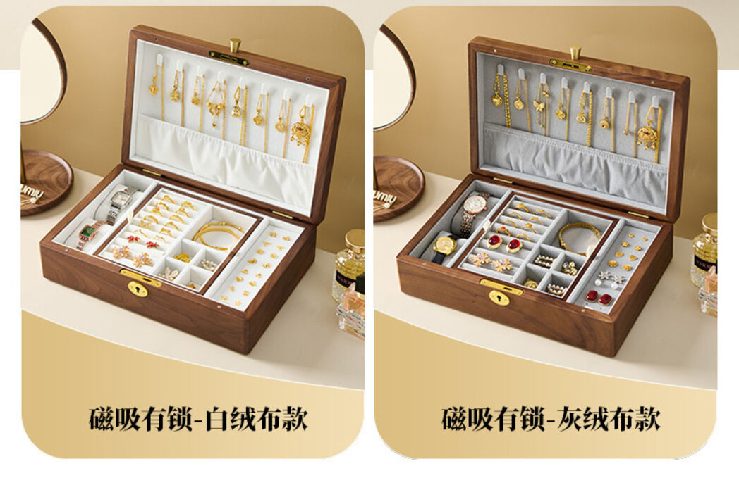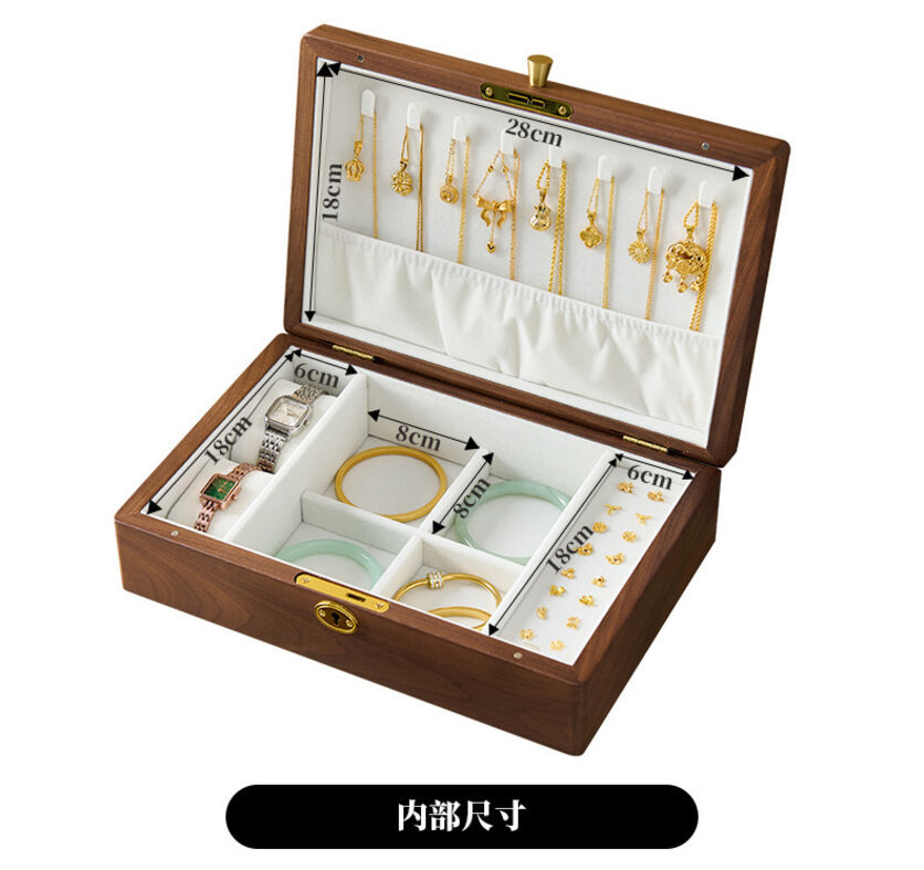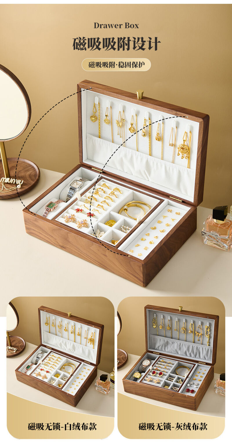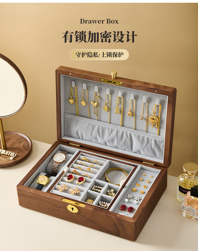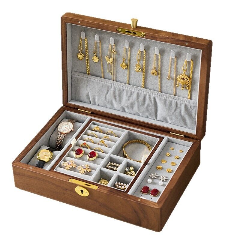 新品下殺 2025胡桃木首飾盒實木盒雙層新婚生日禮物木質小首飾收納盒