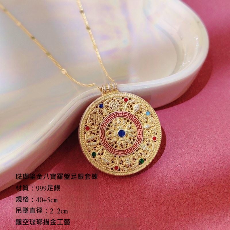 商品名稱:琺瑯鎏金八寶羅盤足銀套鏈