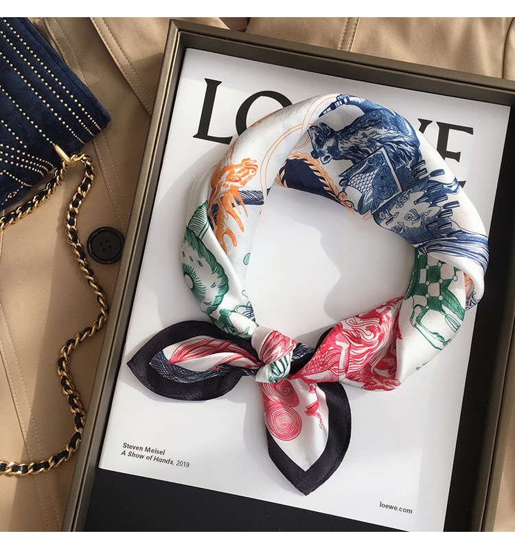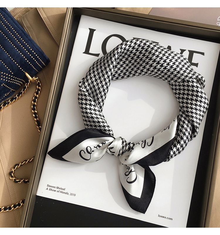梵花 絲綢春秋明星同款經典格紋圍巾小領巾真絲桑蠶絲絲巾小方巾