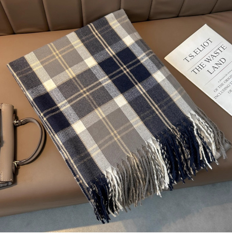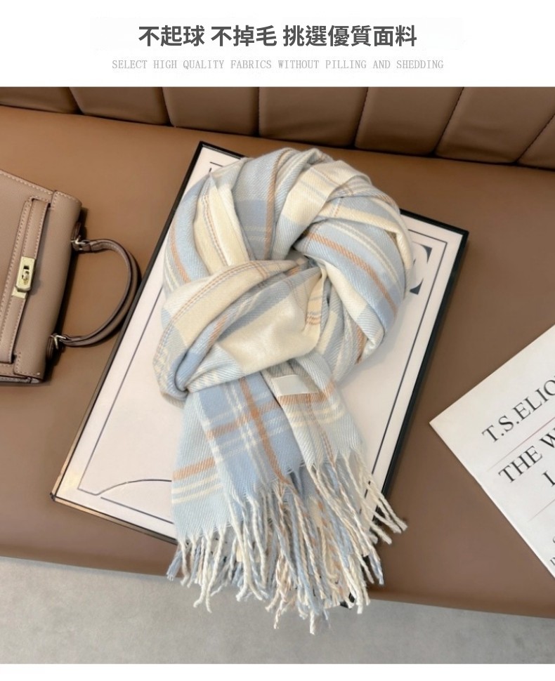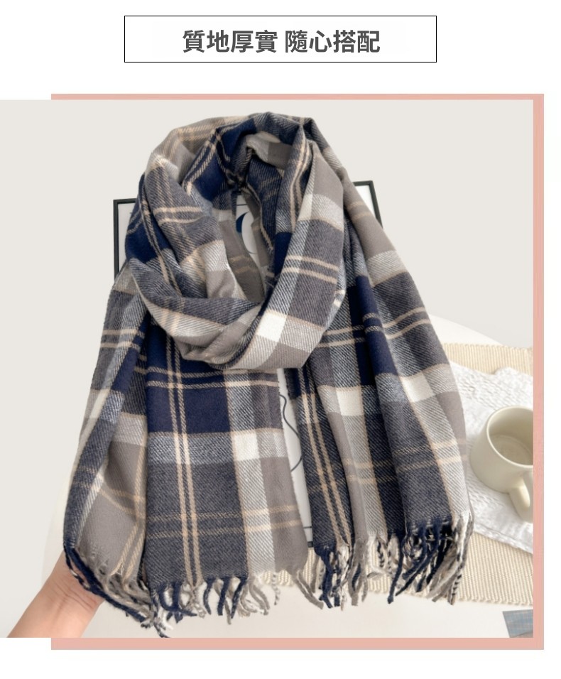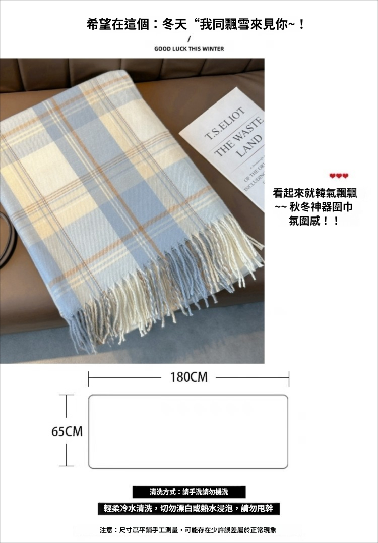 梵花 圍巾冬季女高級感藍色格子披肩百搭韓系氛圍感學生圍脖男