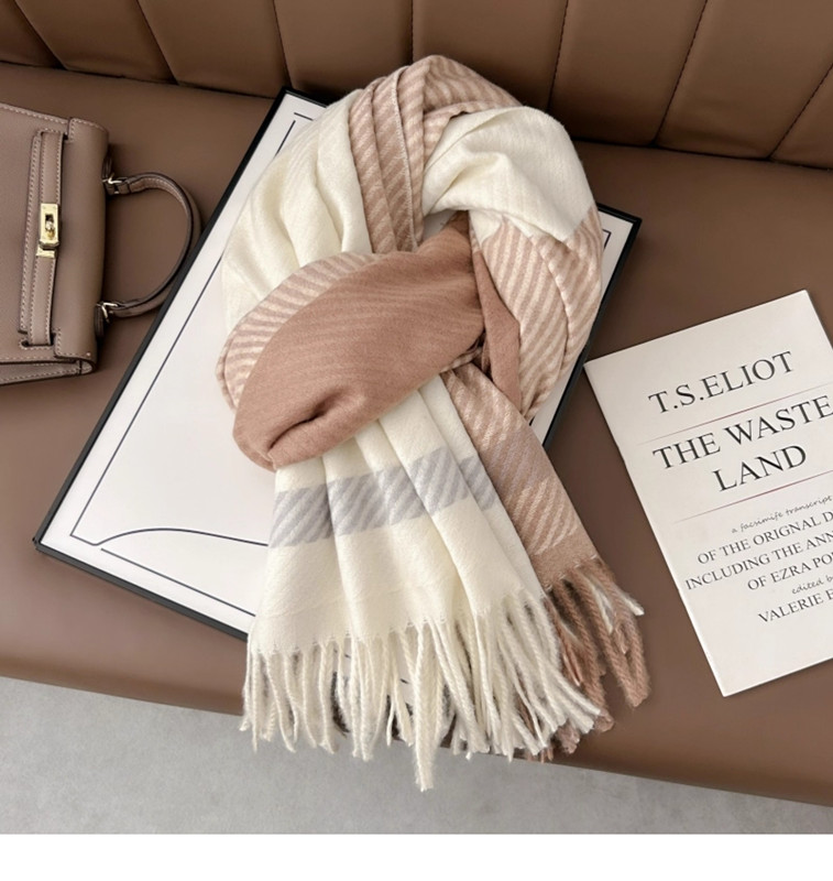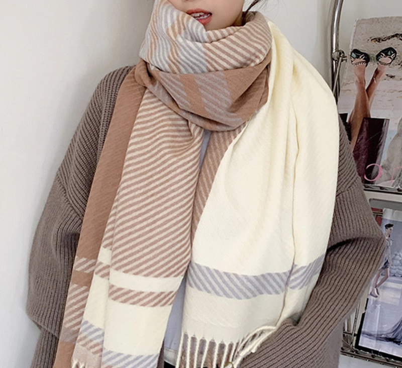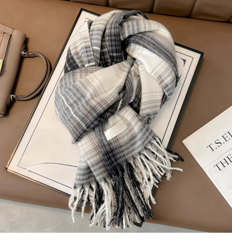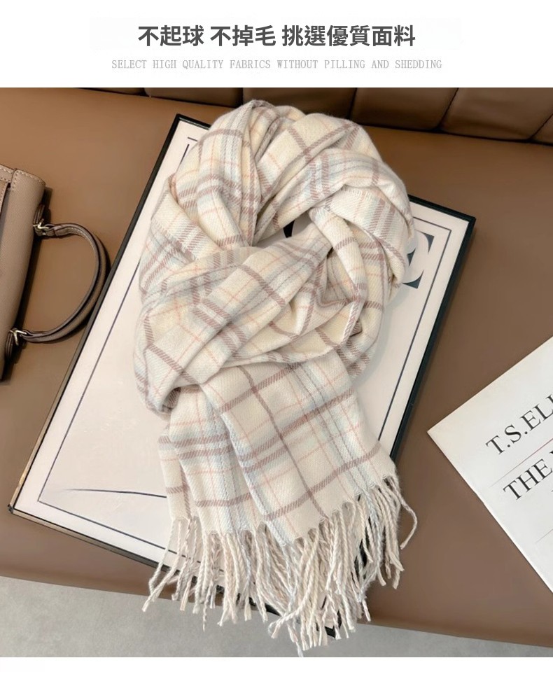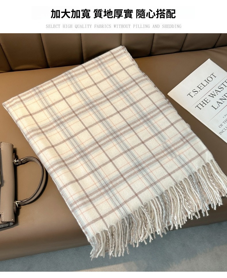 梵花 圍巾冬季女高級感藍色格子披肩百搭韓系氛圍感學生圍脖男