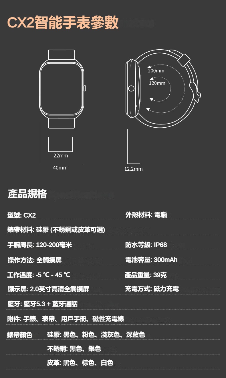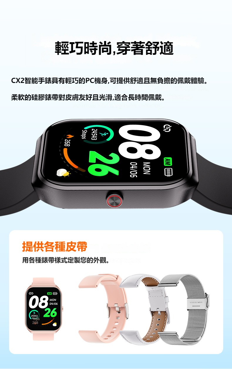 錶帶材質:硅膠(可選不銹鋼、皮帶)