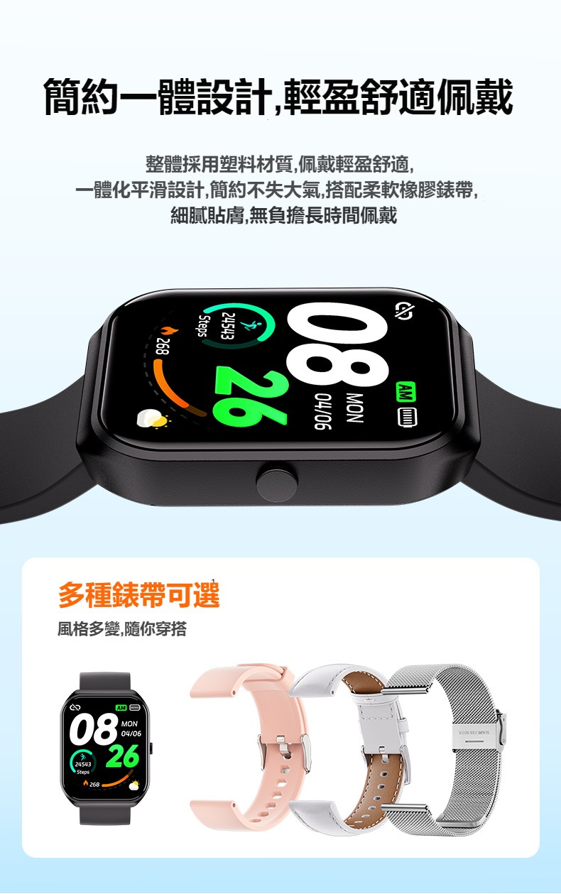 錶帶材質:硅膠(可選不銹鋼、皮帶)
