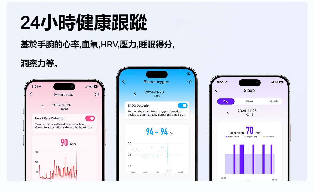 心率監測:內建高精度心率傳感器,實時監測心率變化,幫助你了解運動狀態和身體健康。