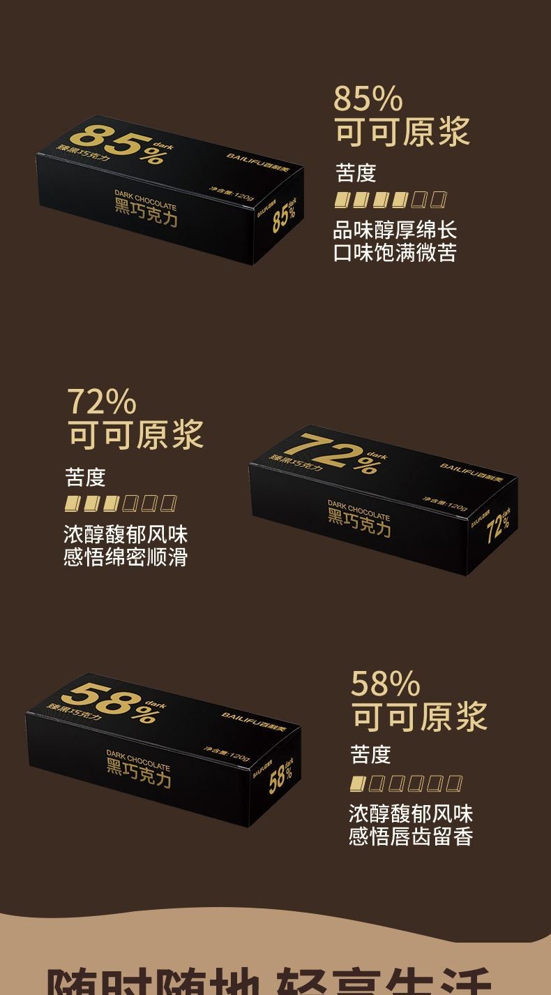 心心相印 可可脂黑巧克力薄片120g健身代餐解饞網紅苦味零食批髮獨立小包裝