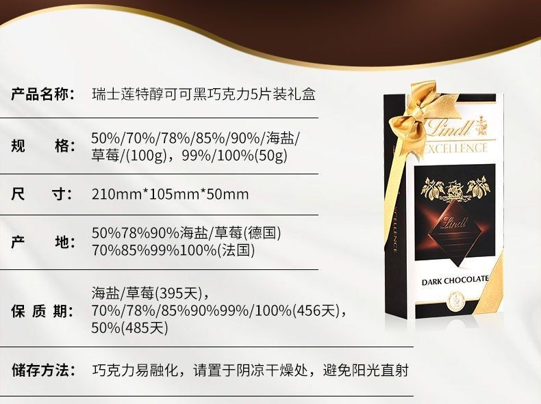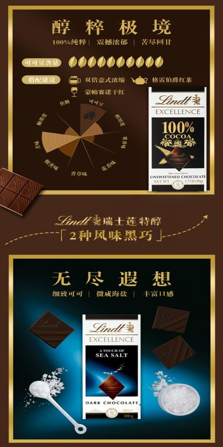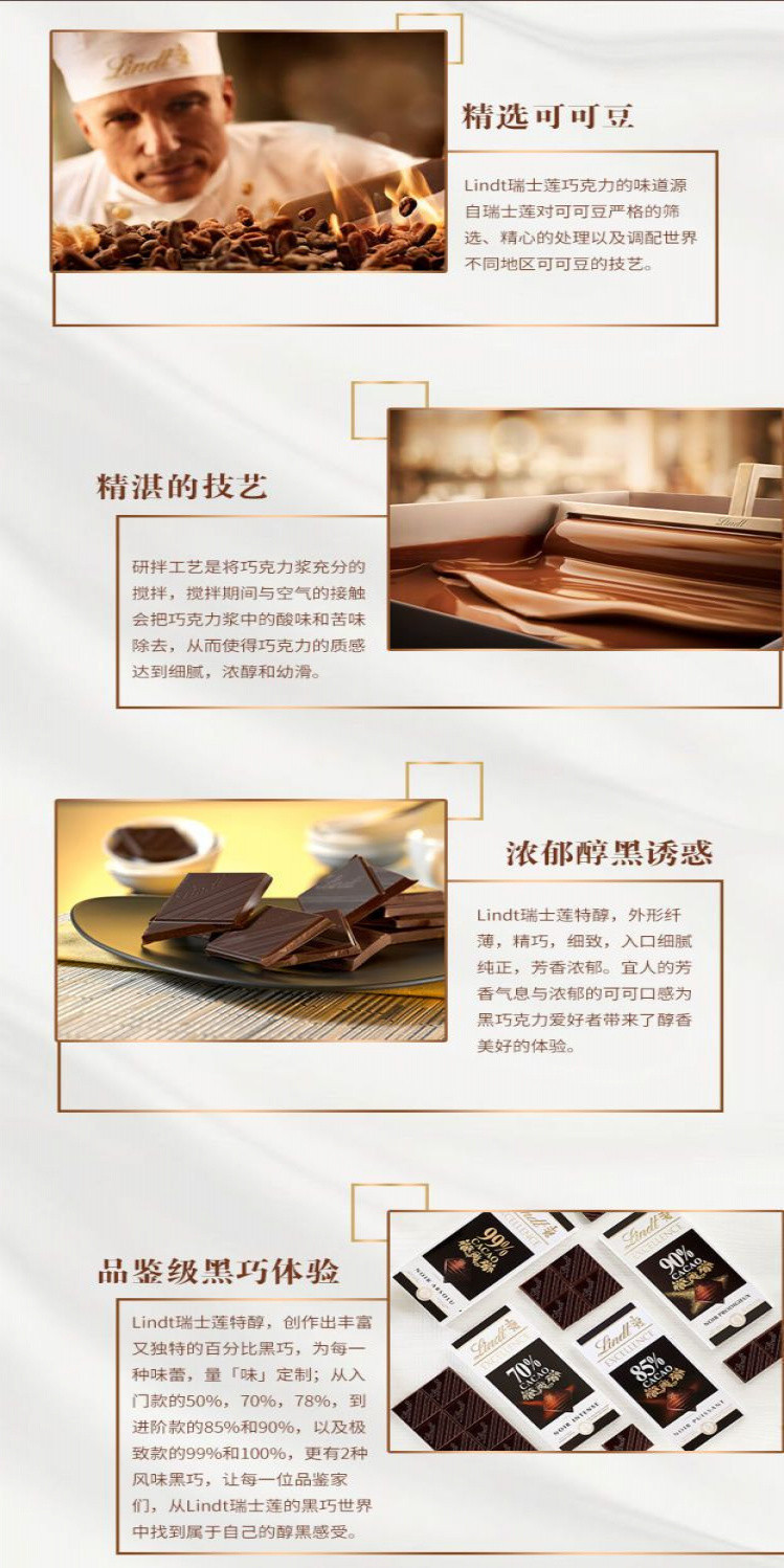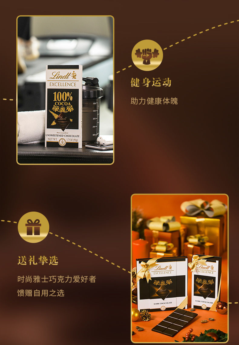 心心相印 Lindt瑞士蓮巧克力特醇排塊85%90%進口可可黑巧克力正品純可可脂