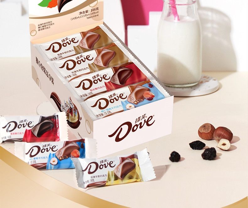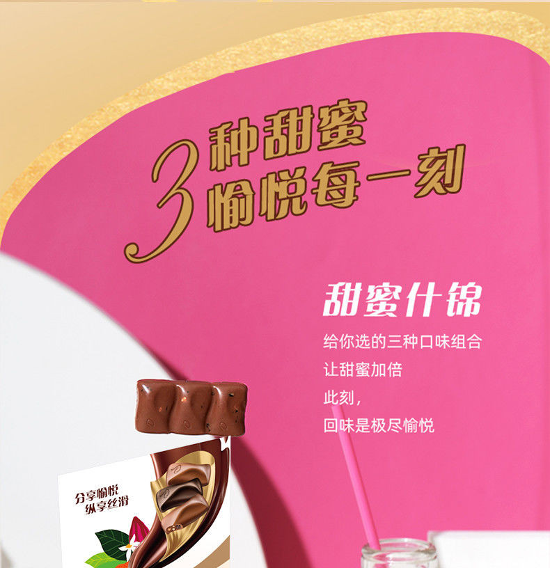 心心相印 德芙什錦巧克力盒裝166g12條絲滑牛奶黑巧休閒零食糖果送女友批髮