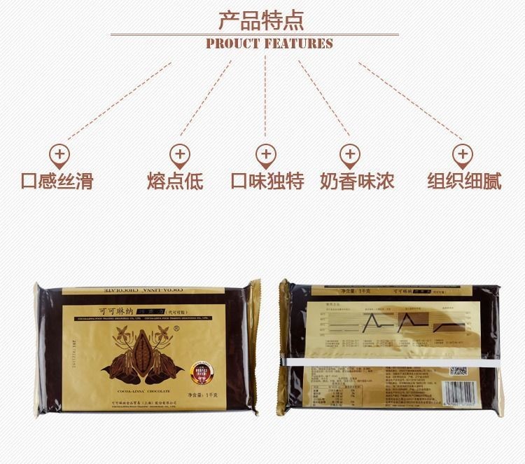 心心相印 可可琳娜巧克力1KG 可可琳納香濃黑DIY手工白巧克力代可可脂磚塊